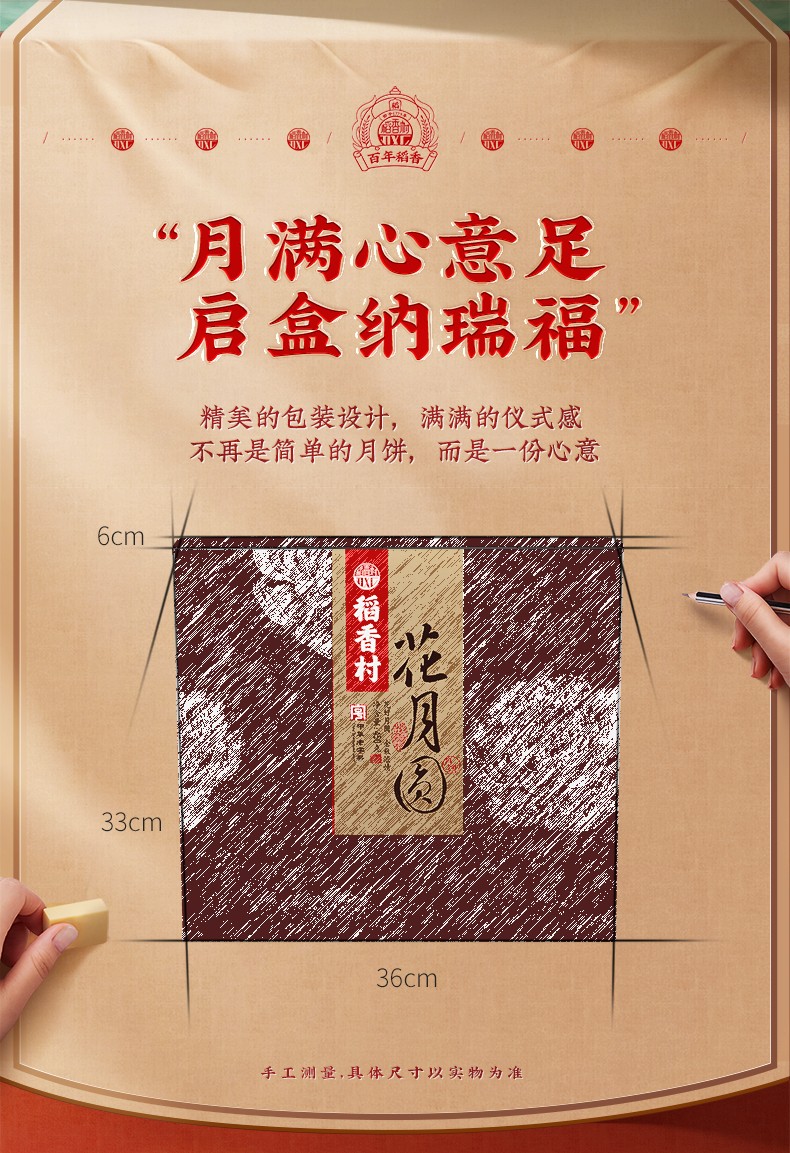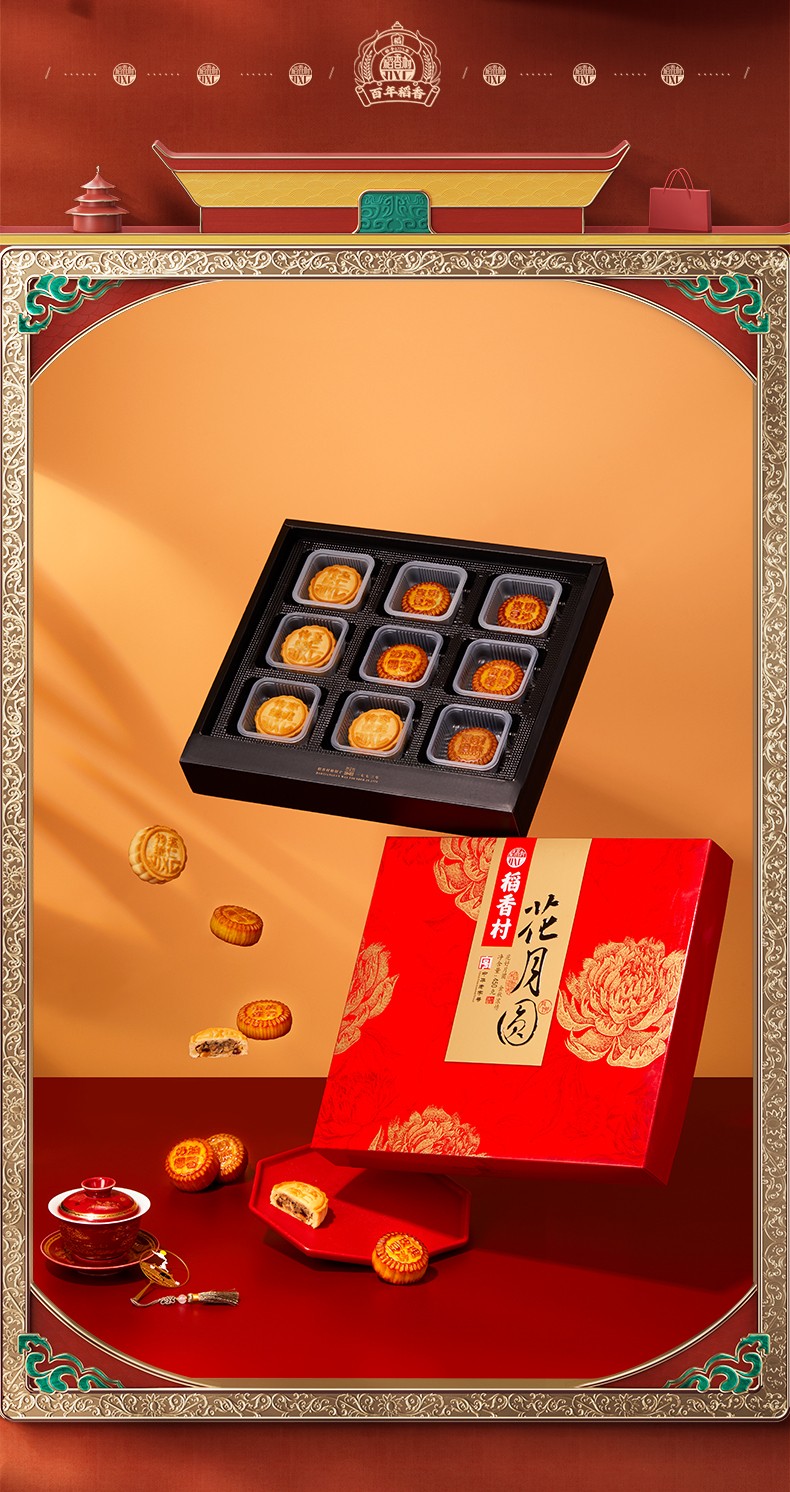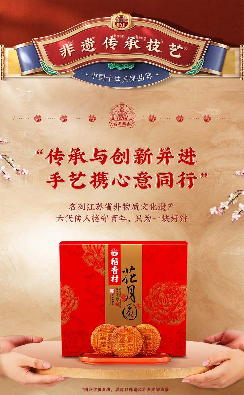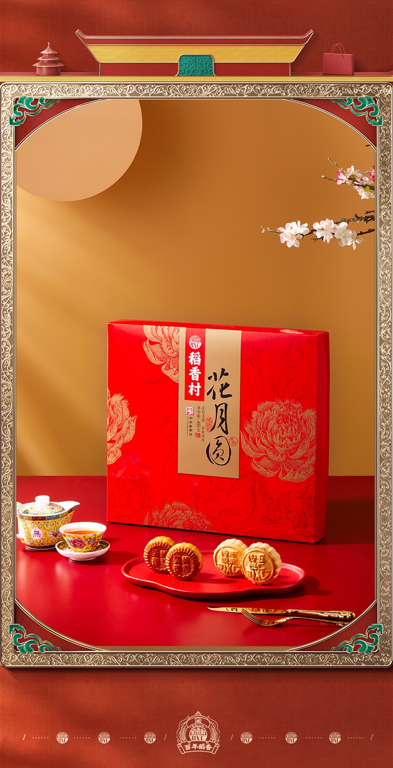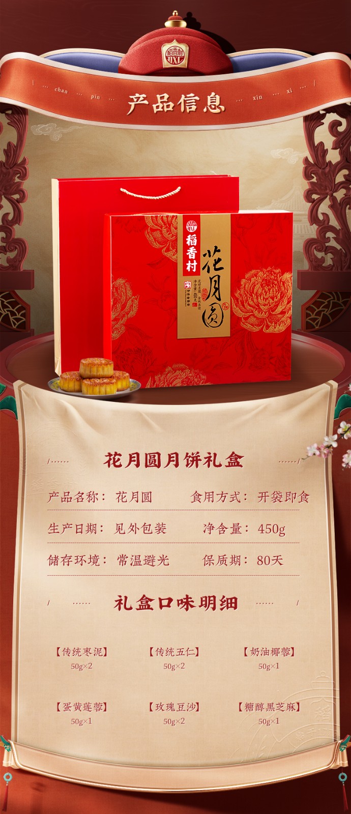 【稻香村月饼礼盒】 9饼6味奶油椰蓉蛋黄莲蓉月饼 花月圆 450g