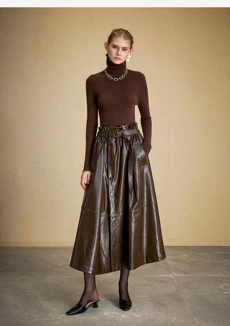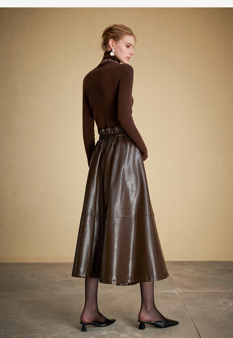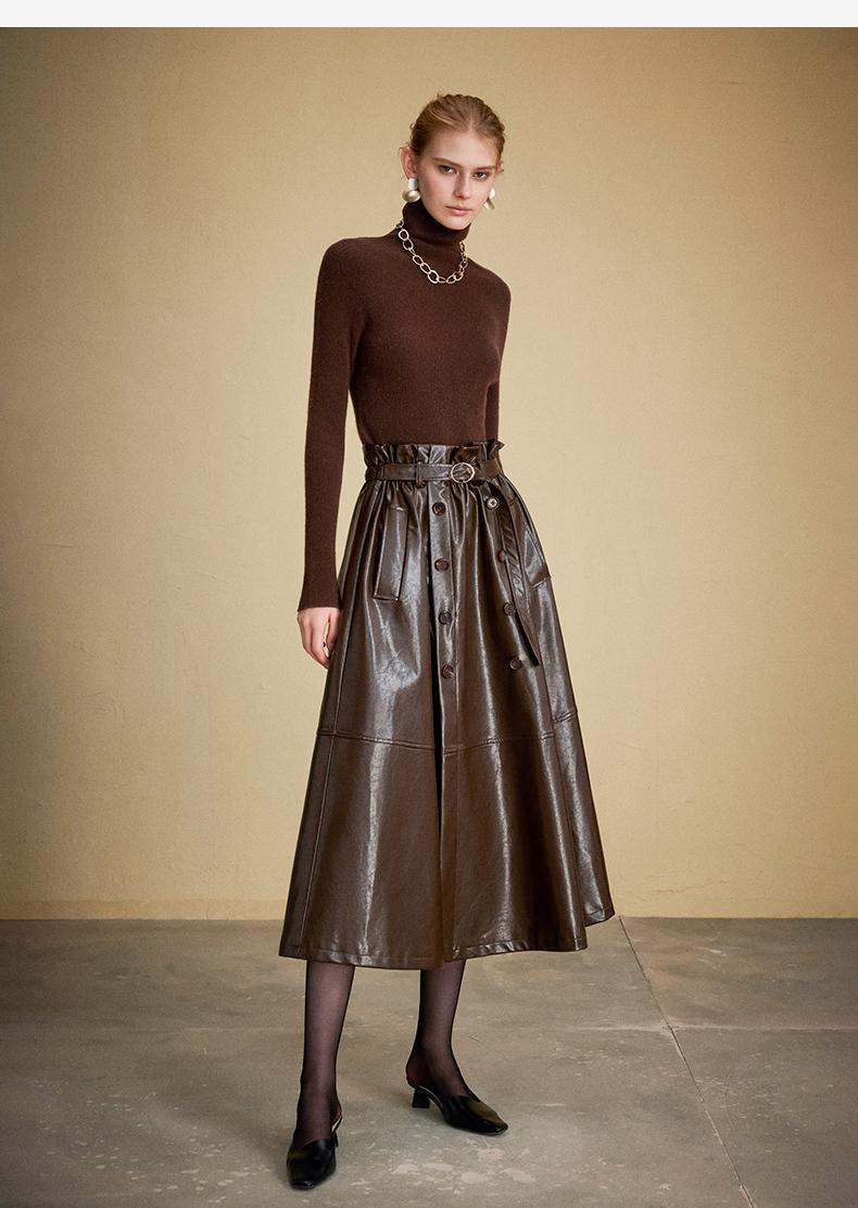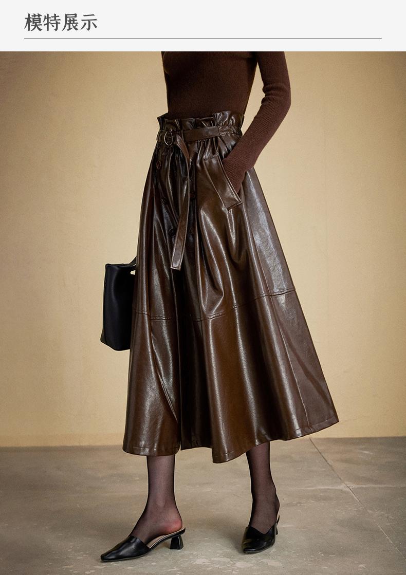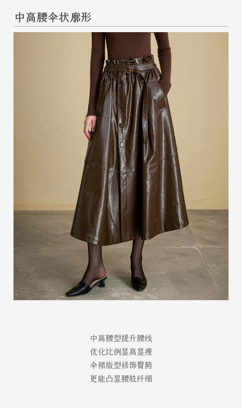 西嘉C+IMPRESS/西嘉美拉德复古油腊皮裙半身裙女秋冬花苞腰赫本风伞裙BQ2304113