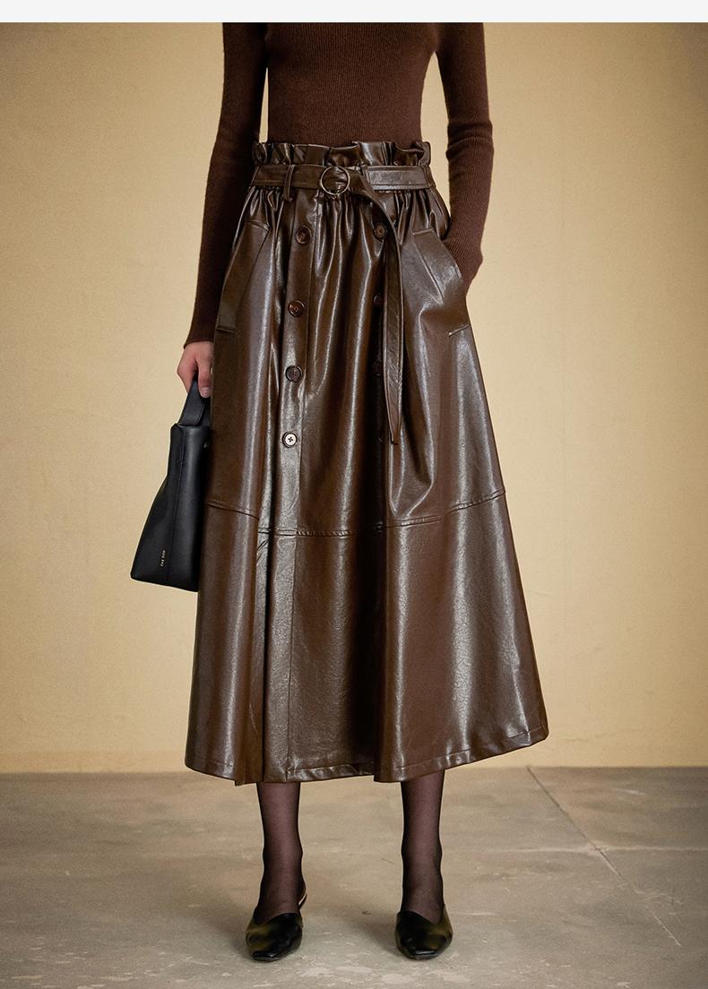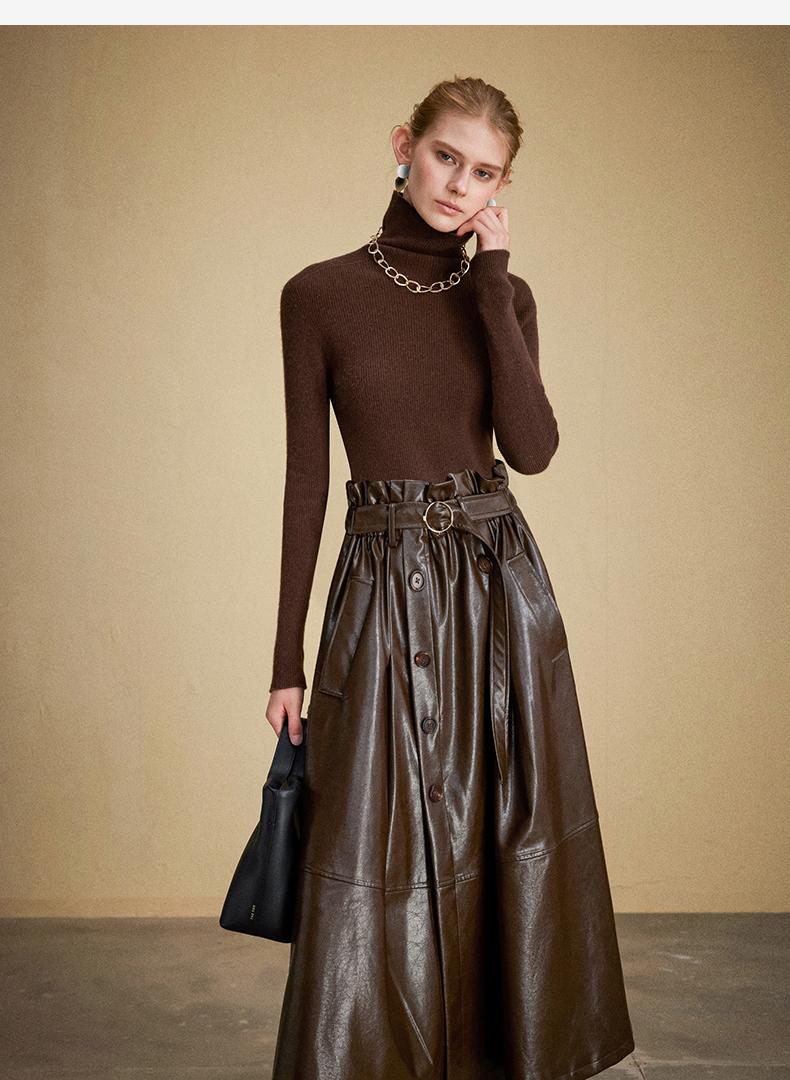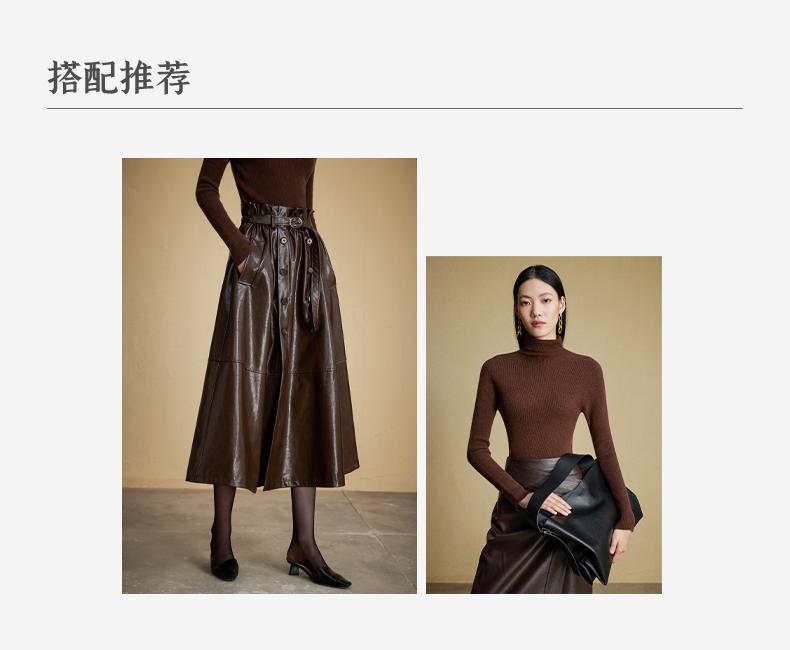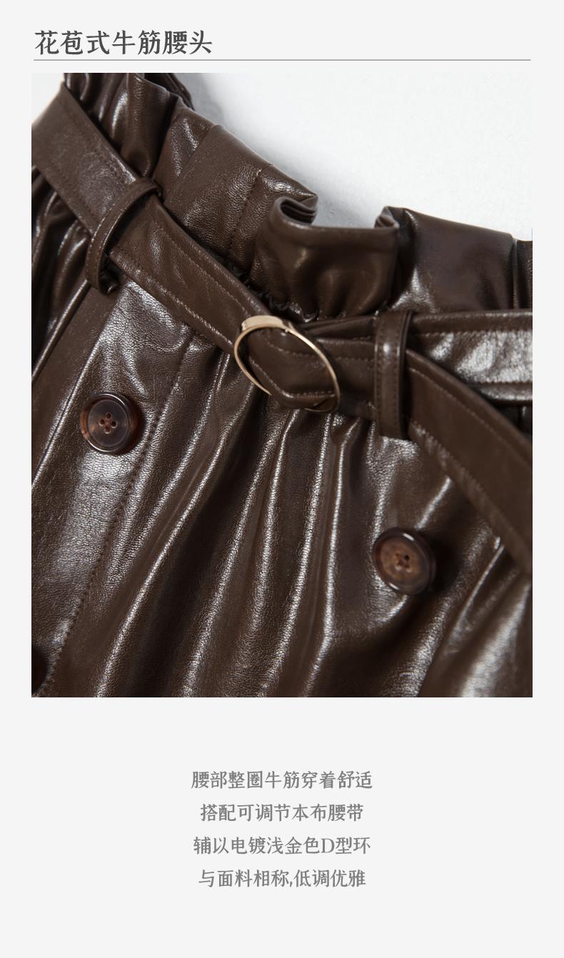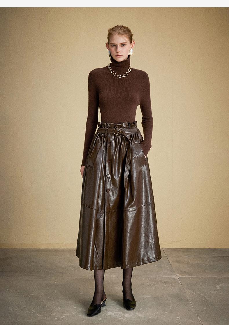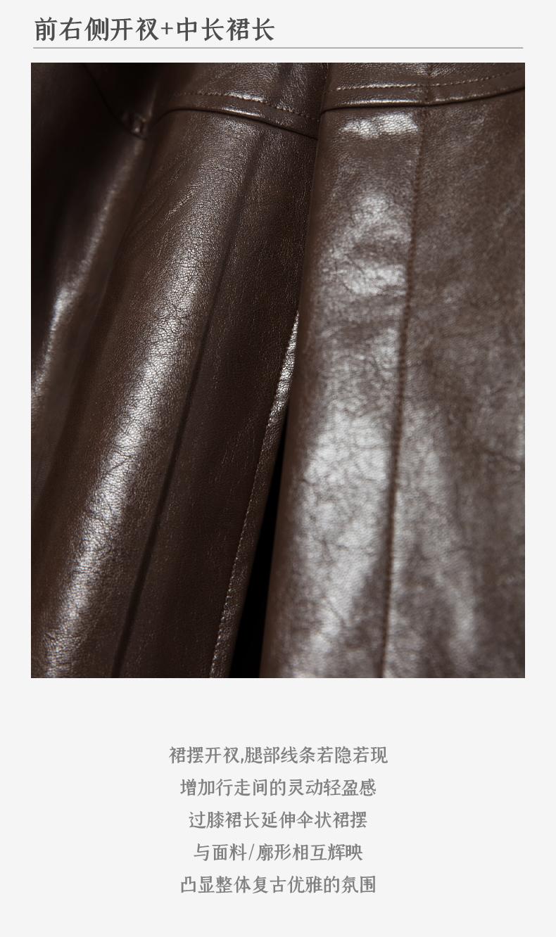 西嘉C+IMPRESS/西嘉美拉德复古油腊皮裙半身裙女秋冬花苞腰赫本风伞裙BQ2304113