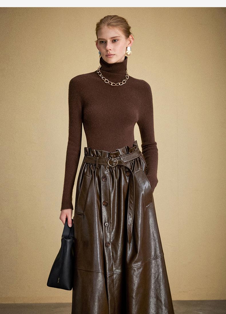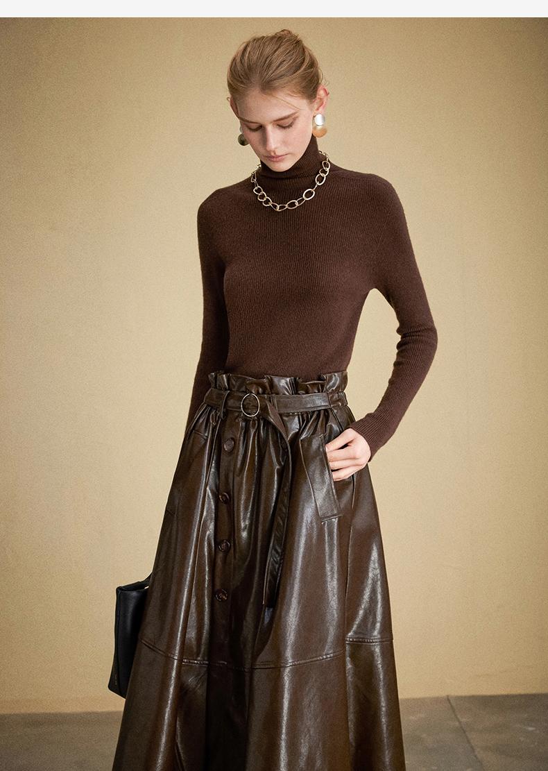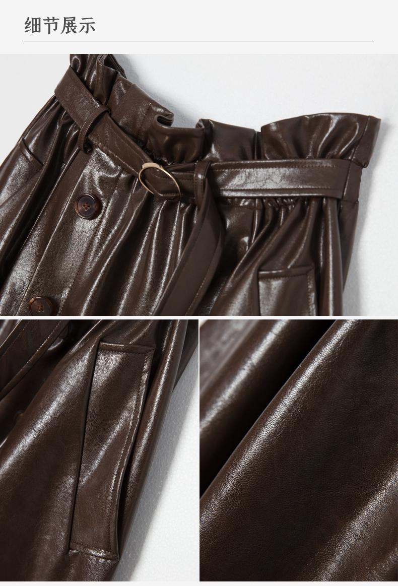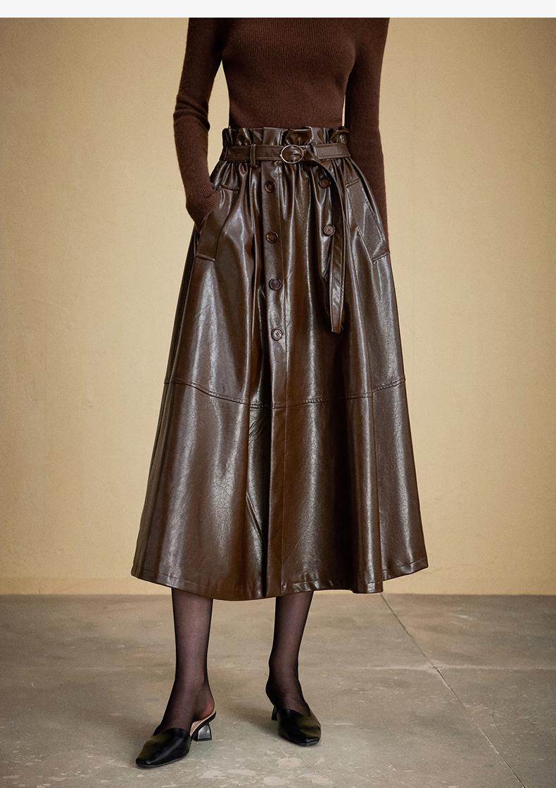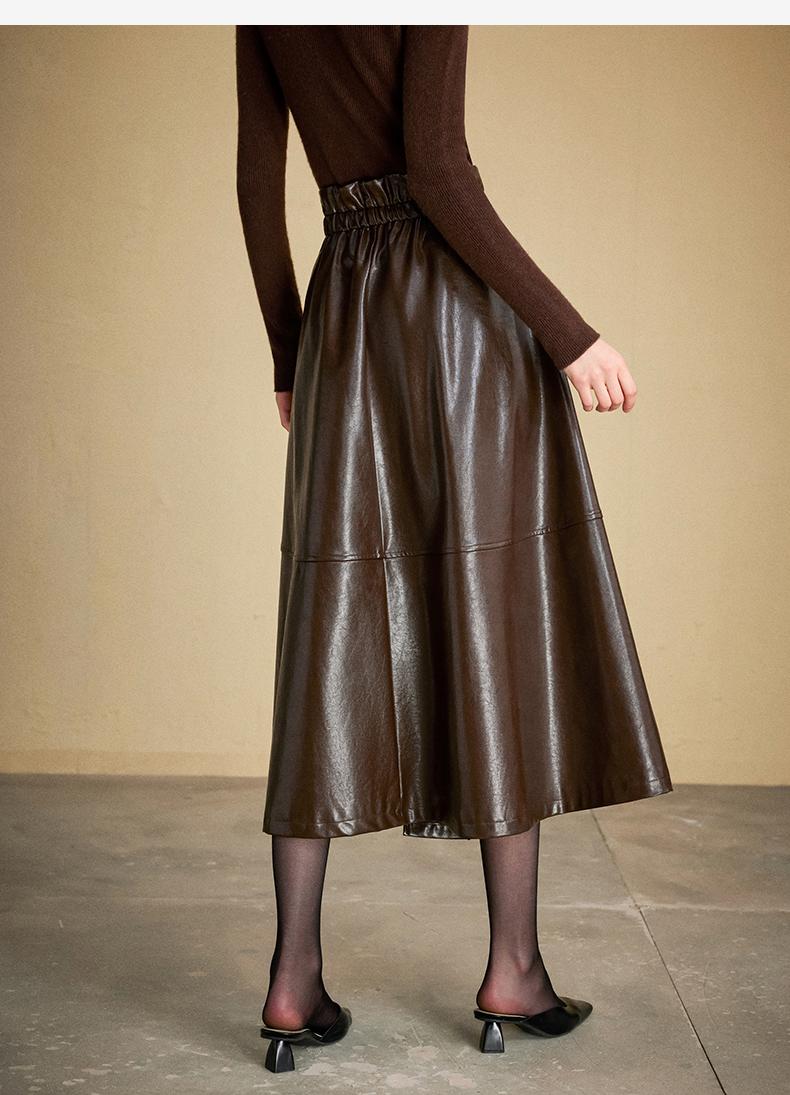 西嘉C+IMPRESS/西嘉美拉德复古油腊皮裙半身裙女秋冬花苞腰赫本风伞裙BQ2304113