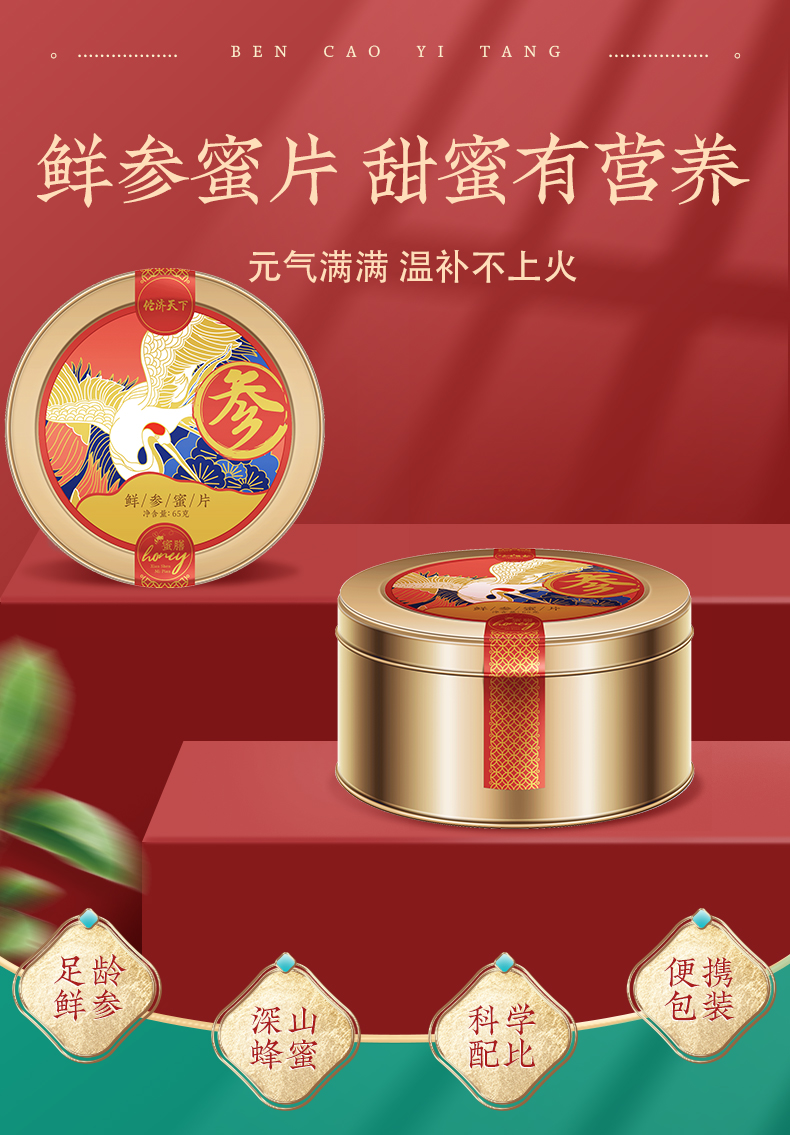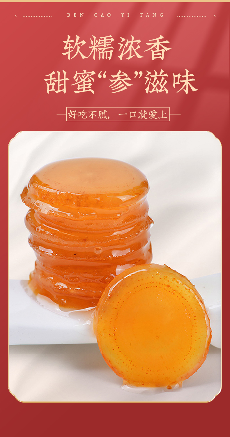 【小蜜片大能量】甄选长白山当季鲜参甜蜜呵护软糯浓香温和调养不上火便携包装本草怡堂人参蜜片鲜参蜜片长白山即食人参蜂蜜