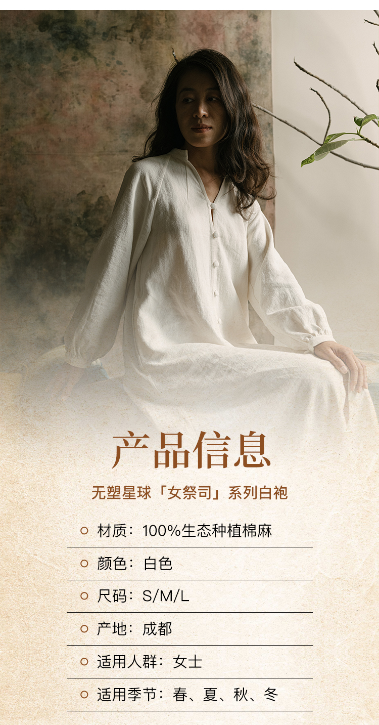 【上新88折】「女祭司」系列白袍 | 开领连衣裙 禾娑基地 敦煌生态种植棉麻 无塑星球