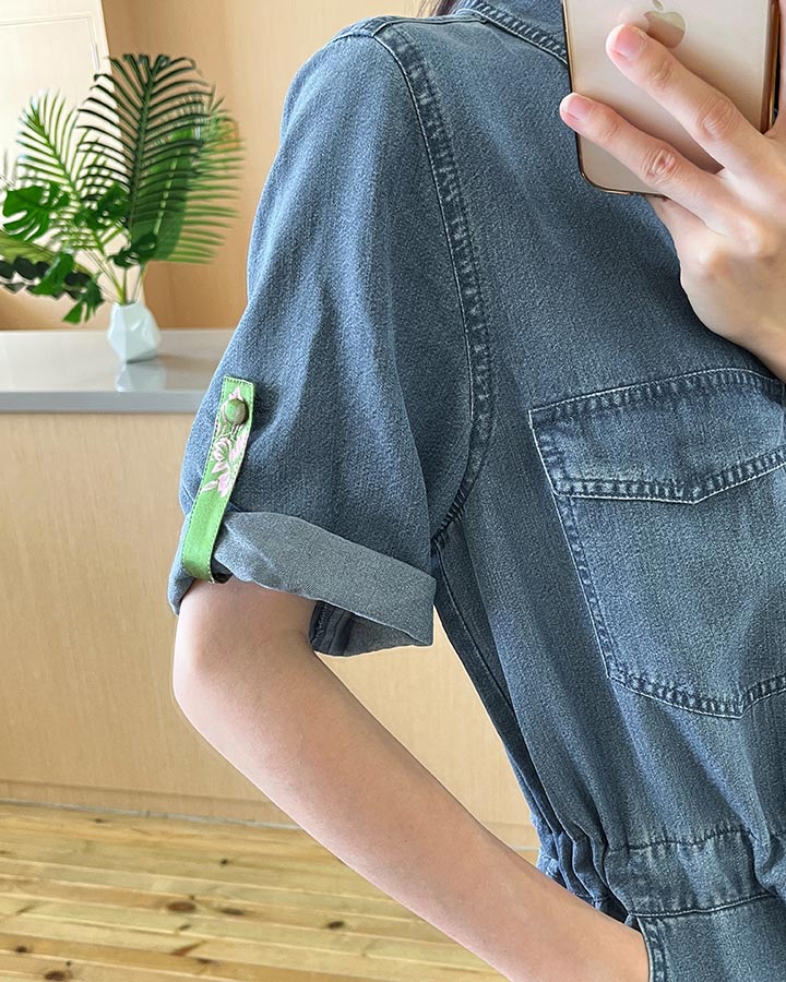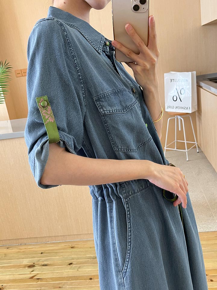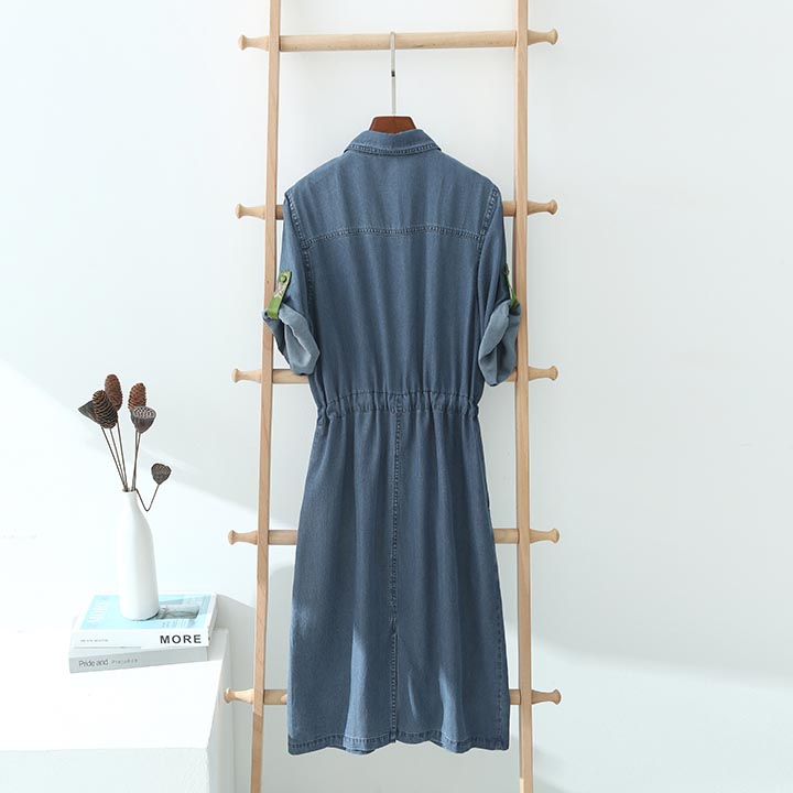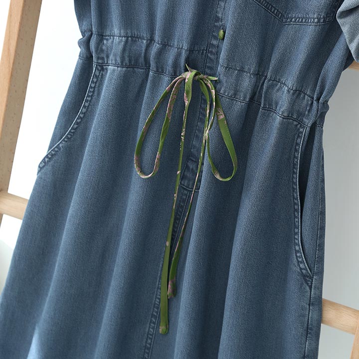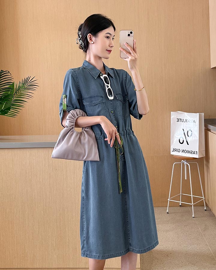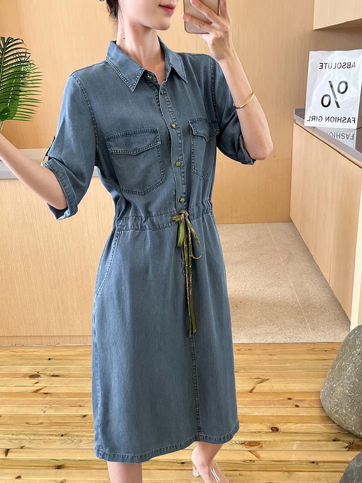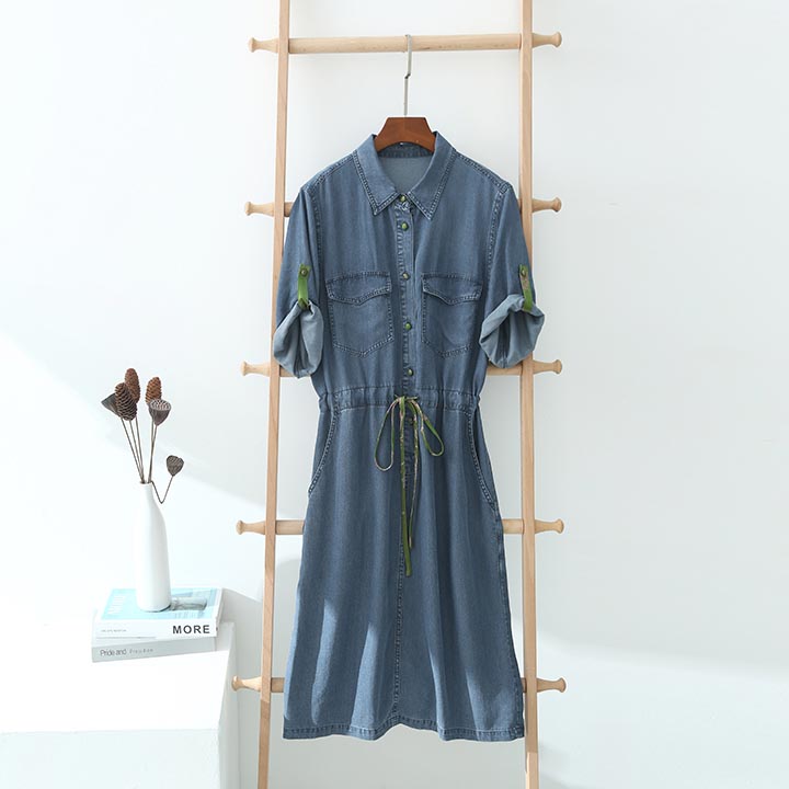洛诗琳62835夏季新款休闲收腰系带薄款天丝牛仔连衣裙女1190