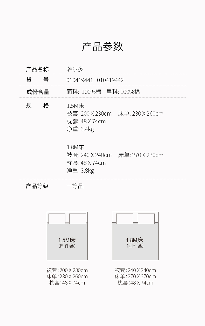 【ROYALCOVER】罗卡芙140S新疆全棉多色纬色织大提花四件套 萨尔多