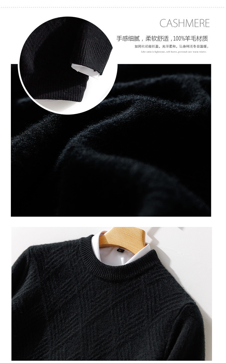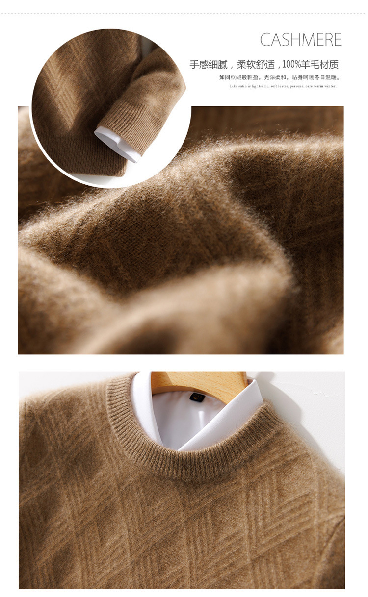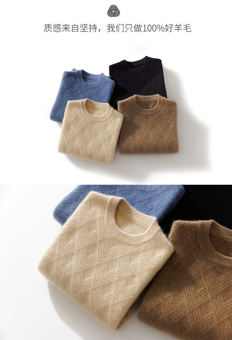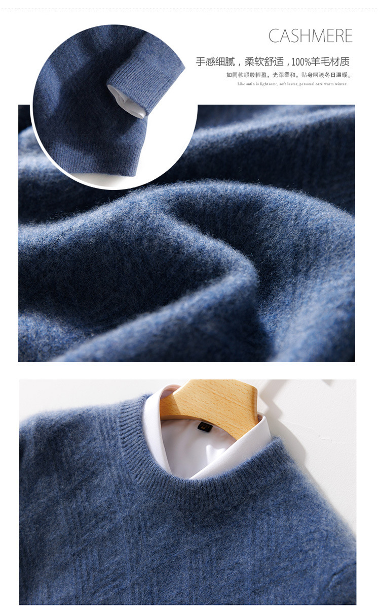 羊毛衫男青年宽松圆领毛衣24秋冬新款商务休闲加厚针织打底羊绒衫