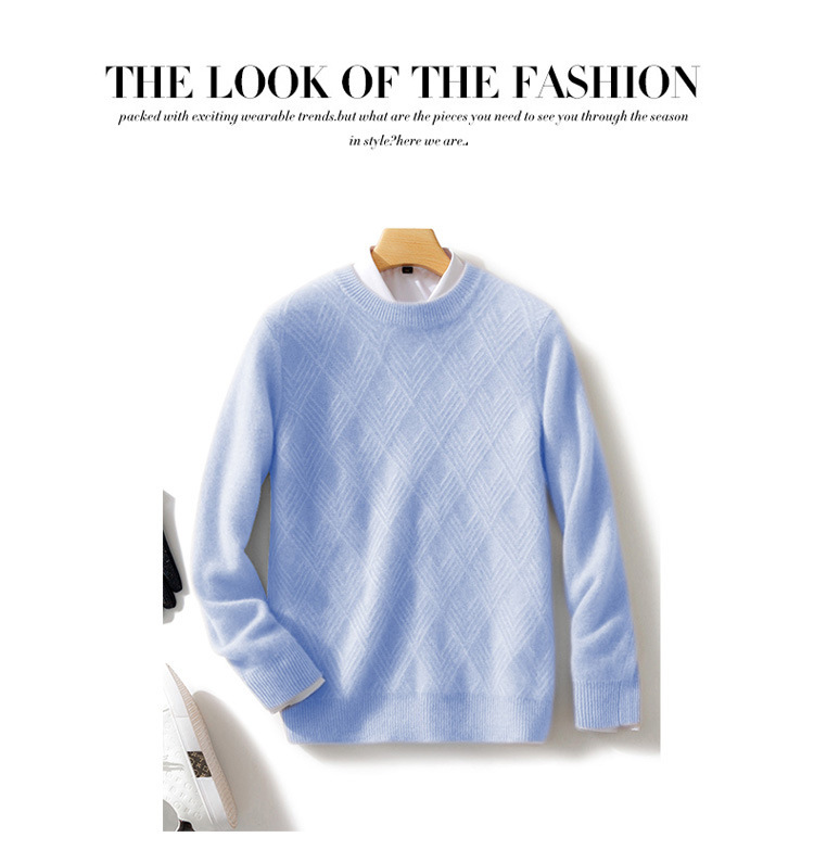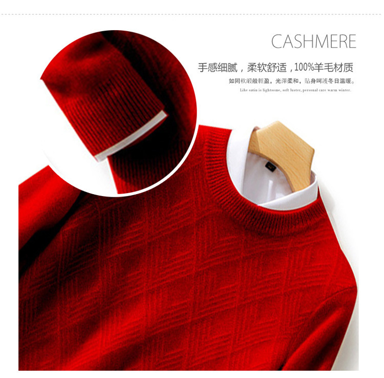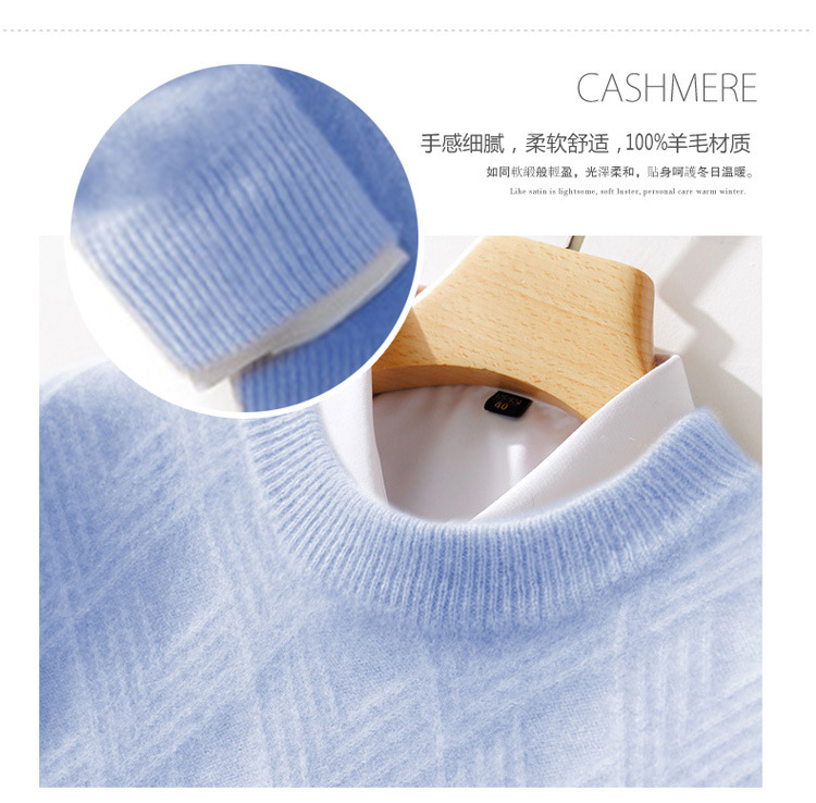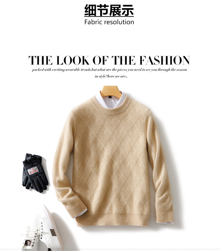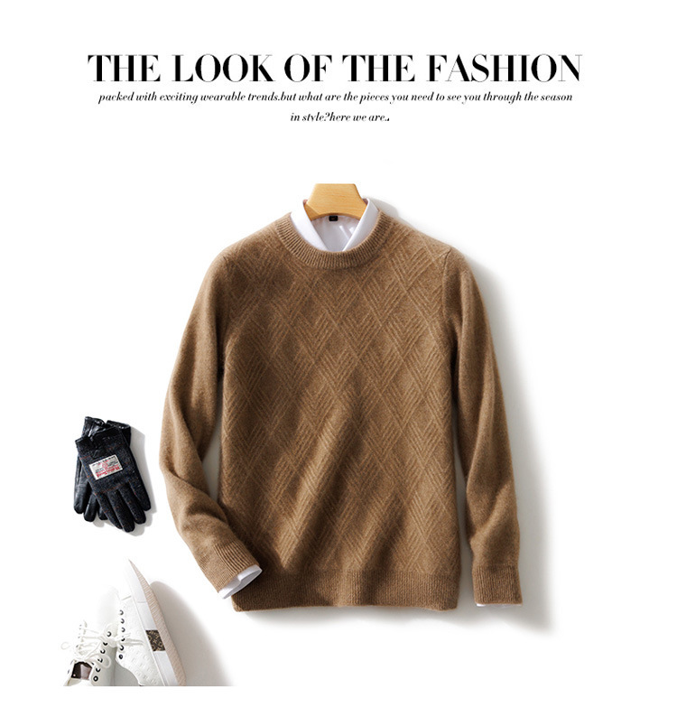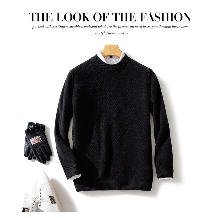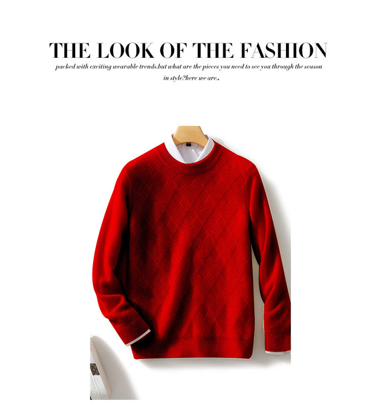 羊毛衫男青年宽松圆领毛衣24秋冬新款商务休闲加厚针织打底羊绒衫