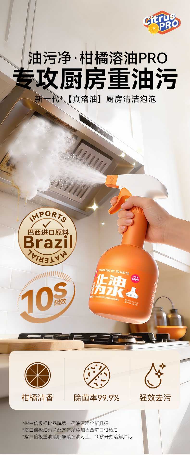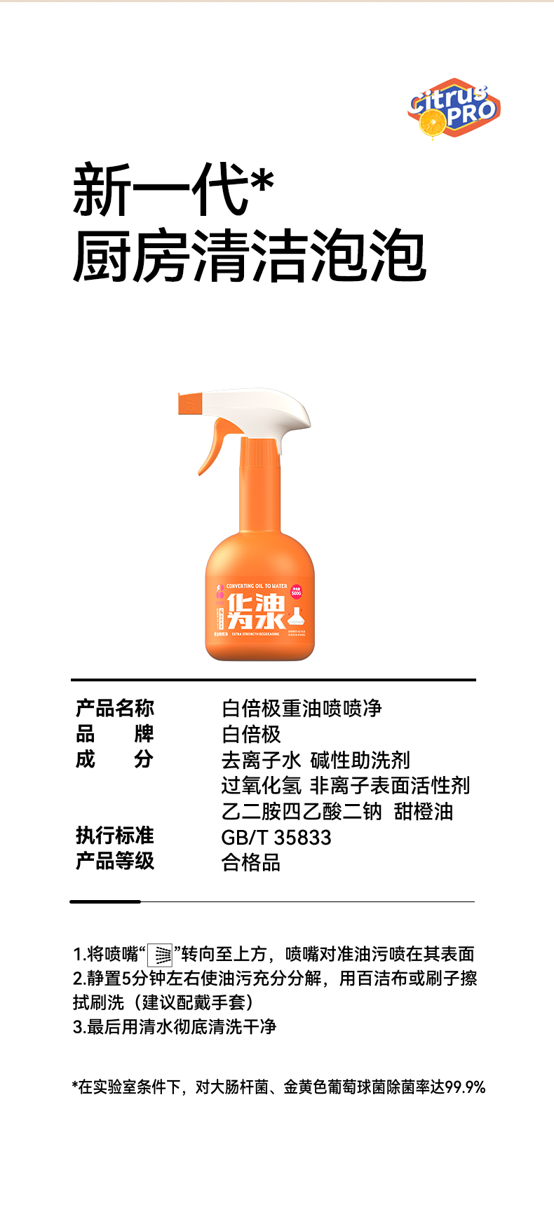 白倍极重油污喷喷净 专为重油污研发!一喷瓦解各类油污残留,厨房清洁超省心