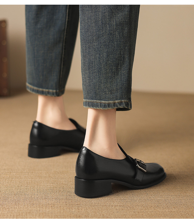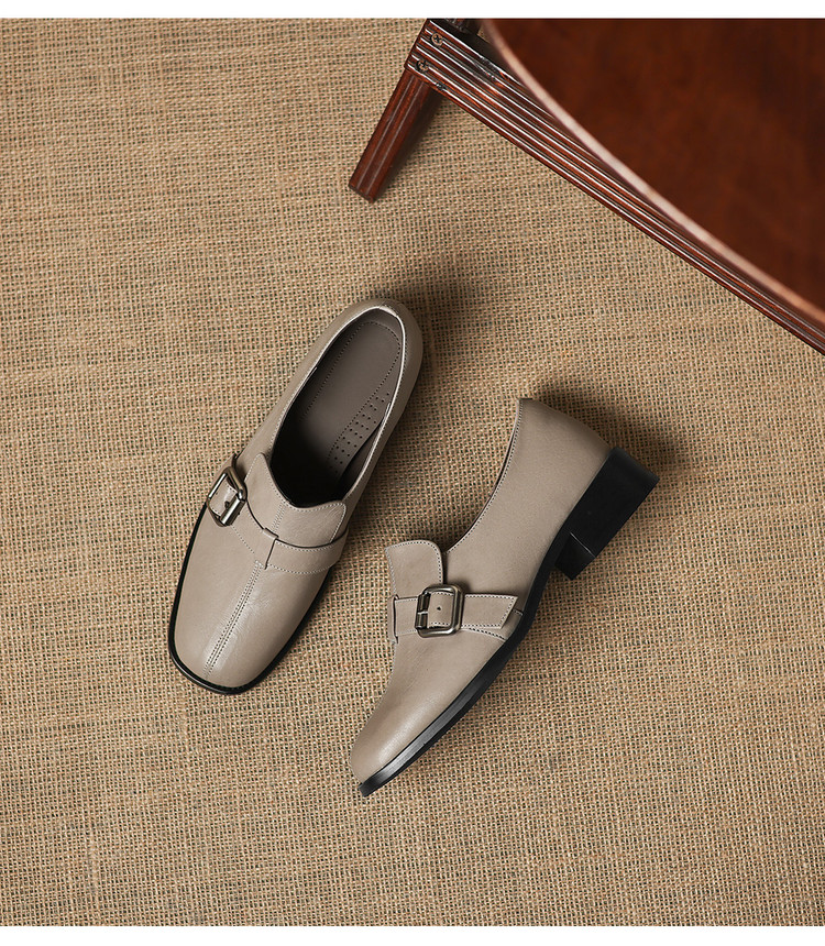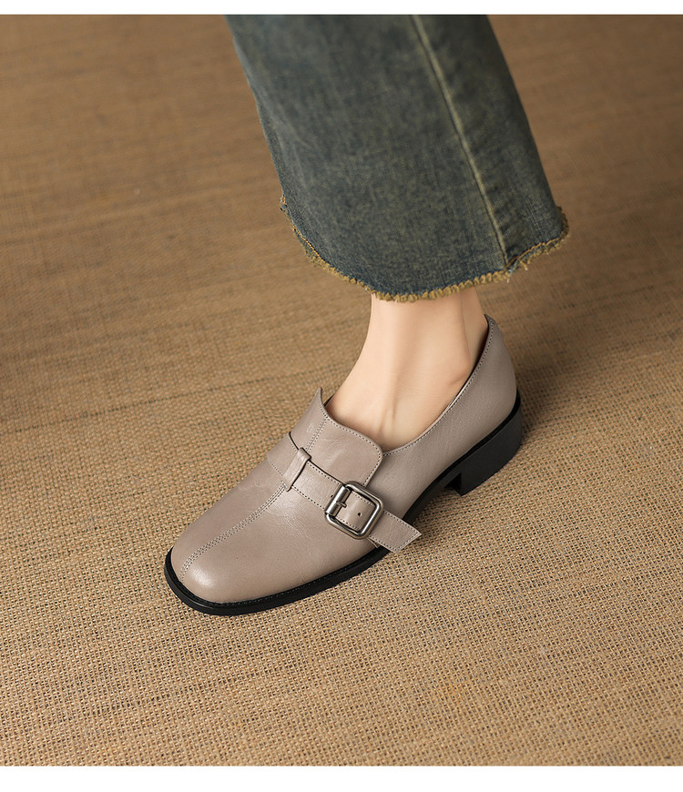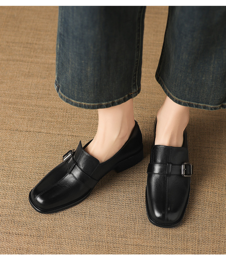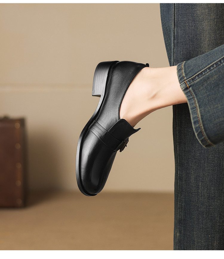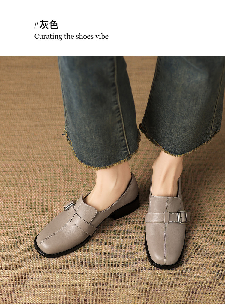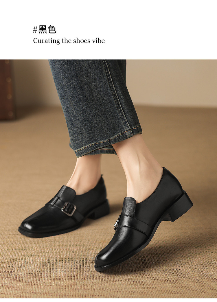 【预售7天】中跟百搭头层水洗牛皮,乐福鞋皮带扣小皮鞋NGMZR&72-8059
