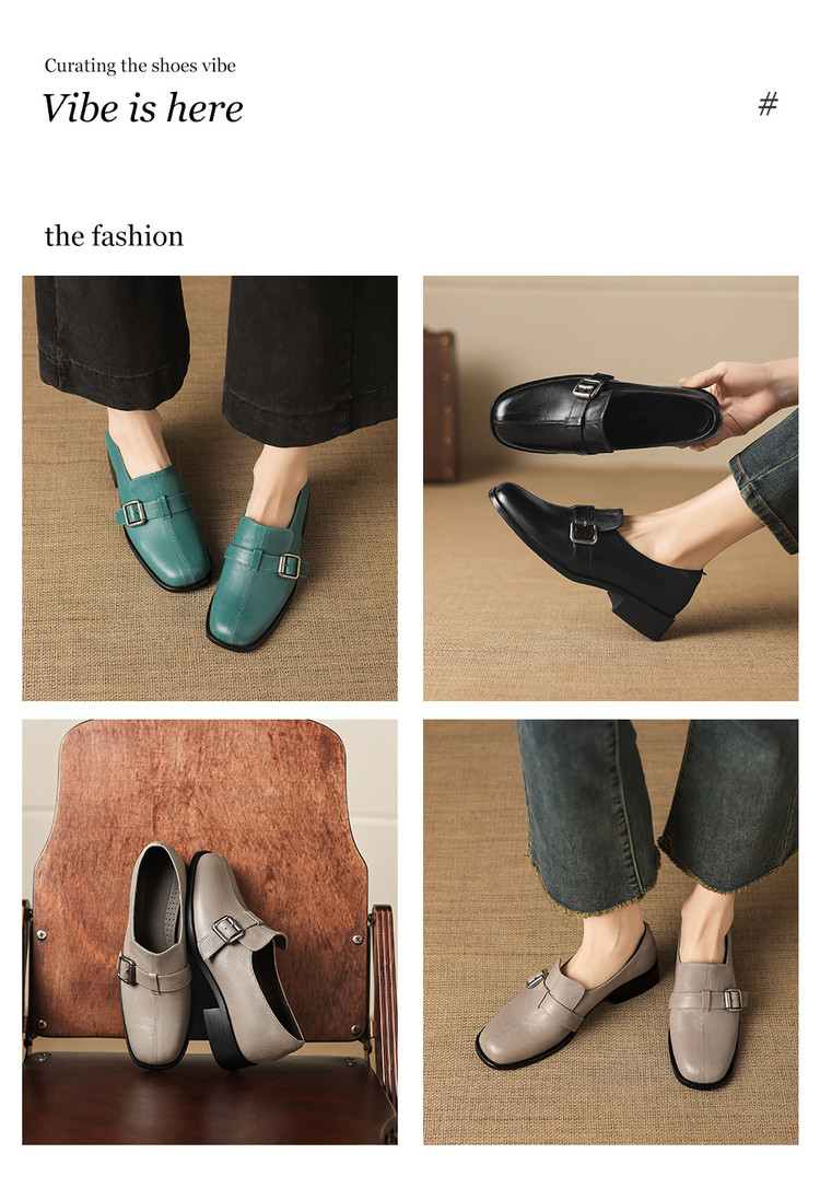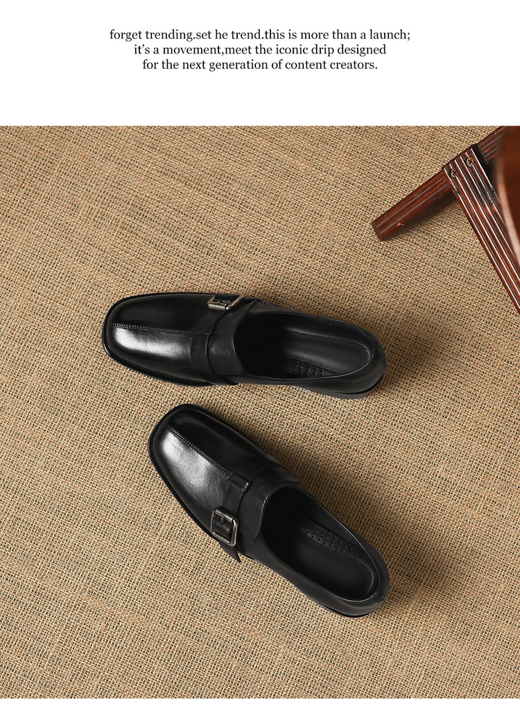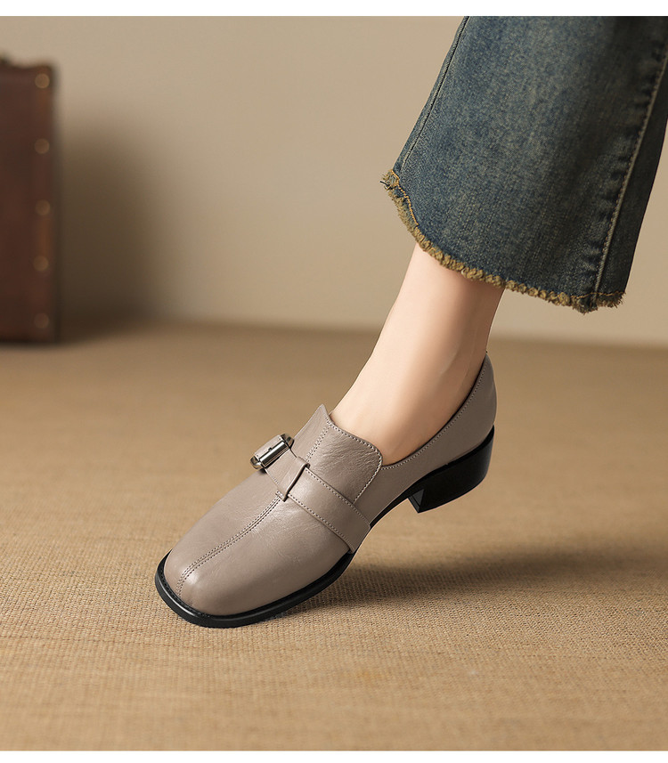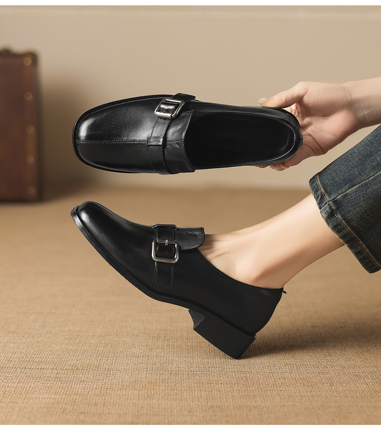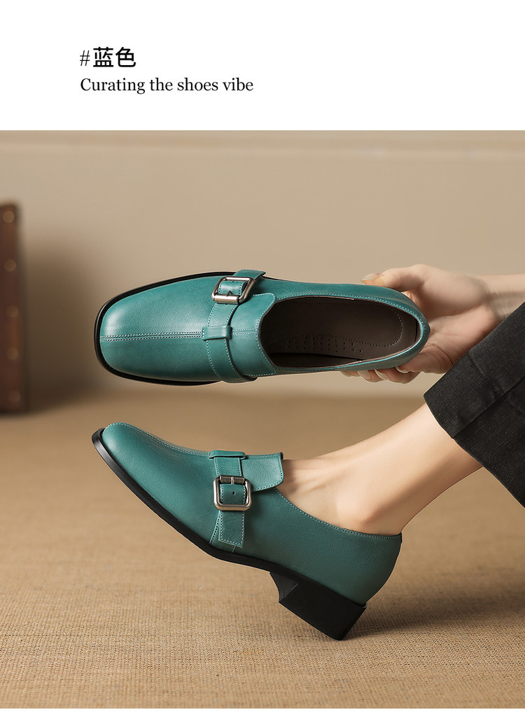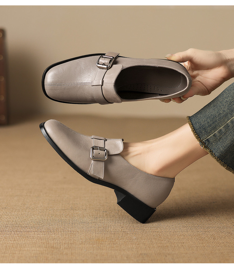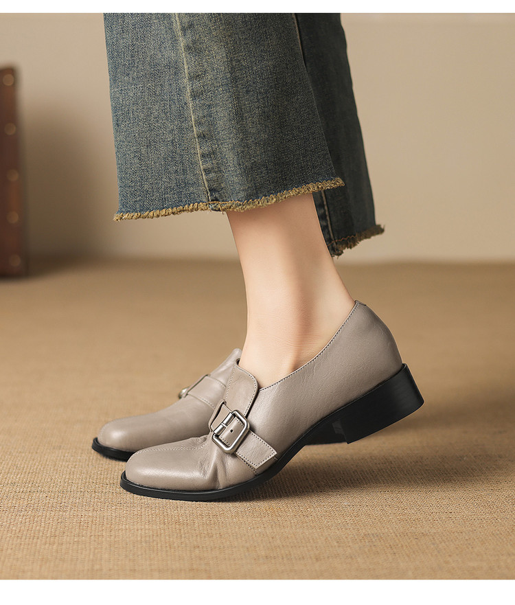 【预售7天】中跟百搭头层水洗牛皮,乐福鞋皮带扣小皮鞋NGMZR&72-8059
