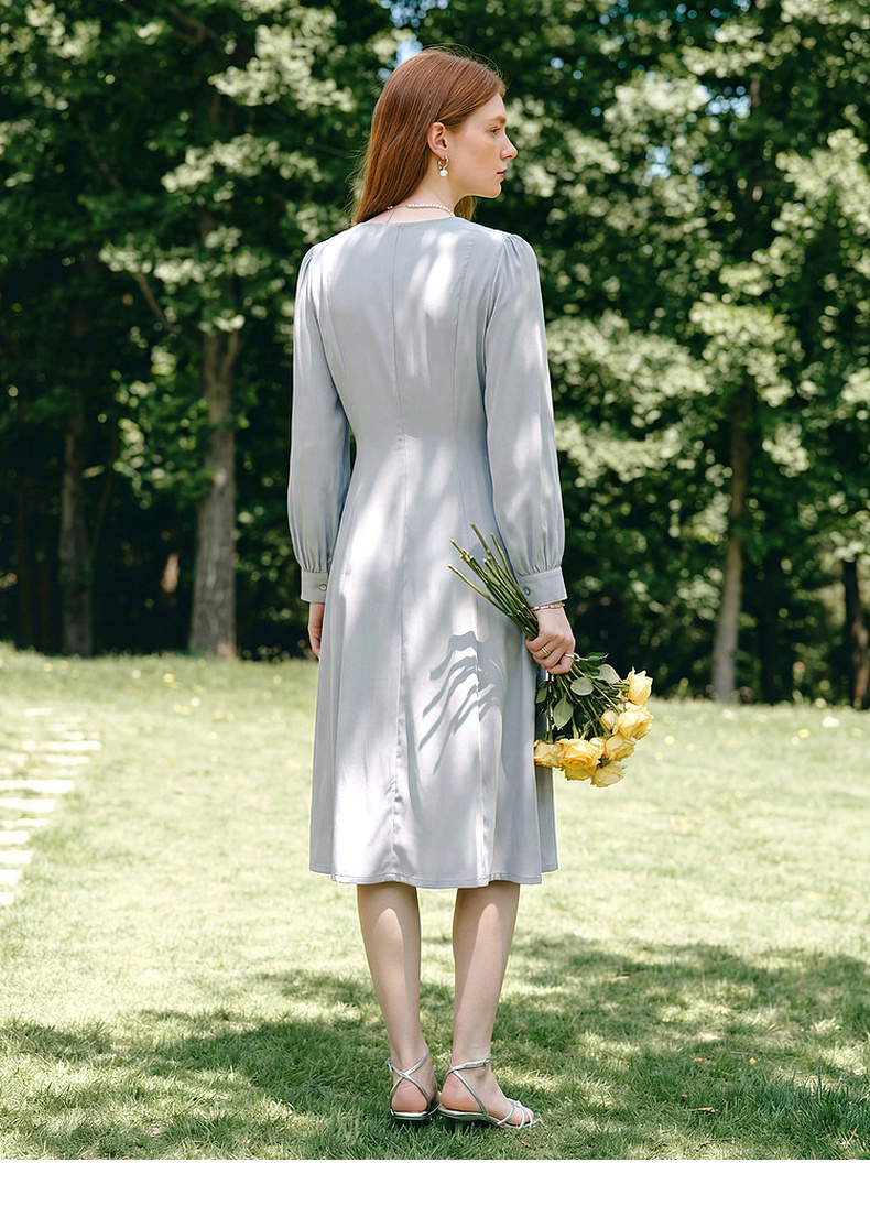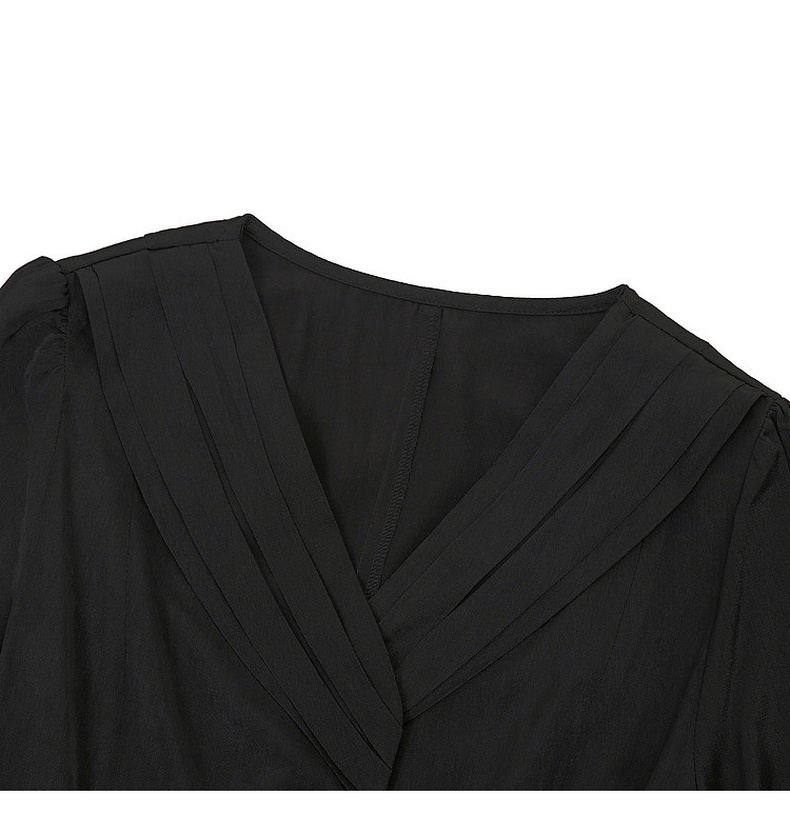天猫同步【温柔赫本风】拉夏贝尔/La Chapelle气质高级~复古通勤不规则百褶V领长款连衣裙
