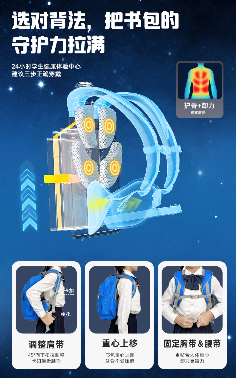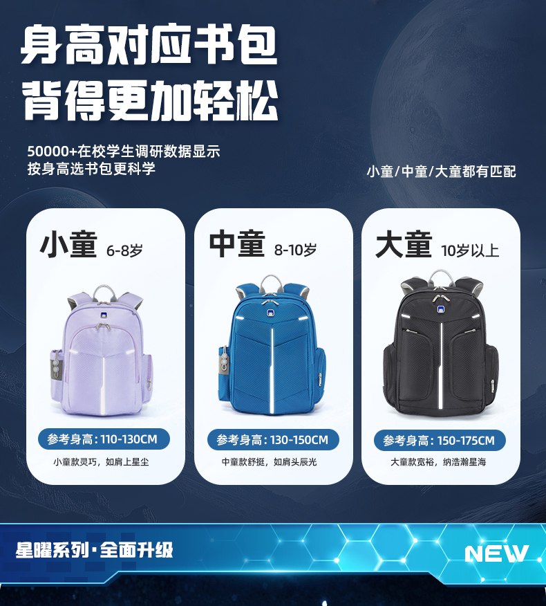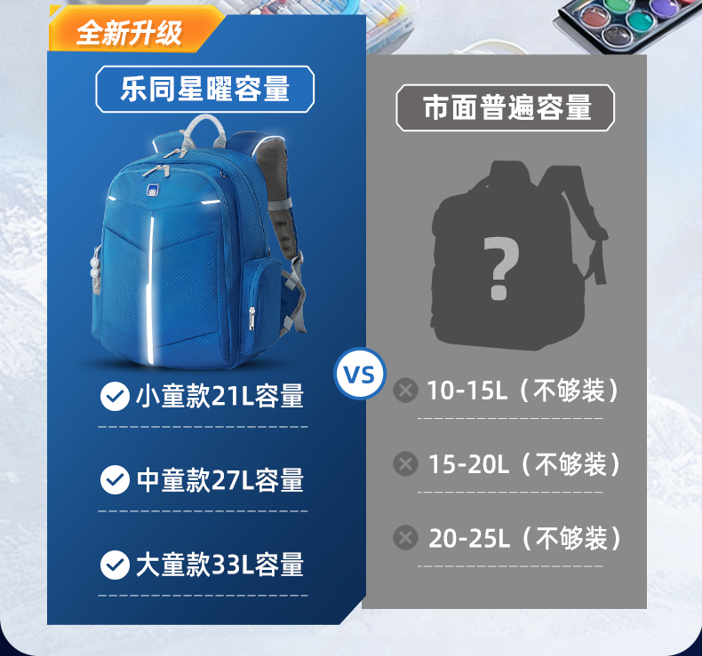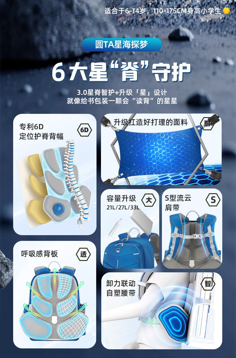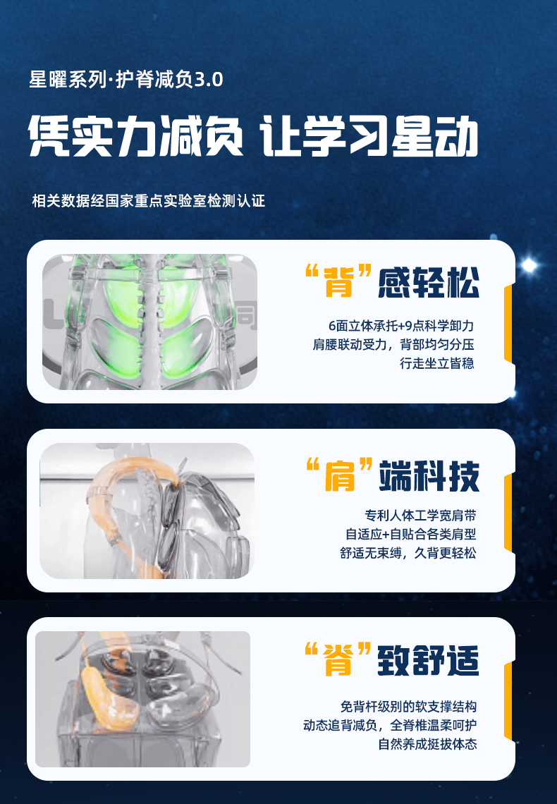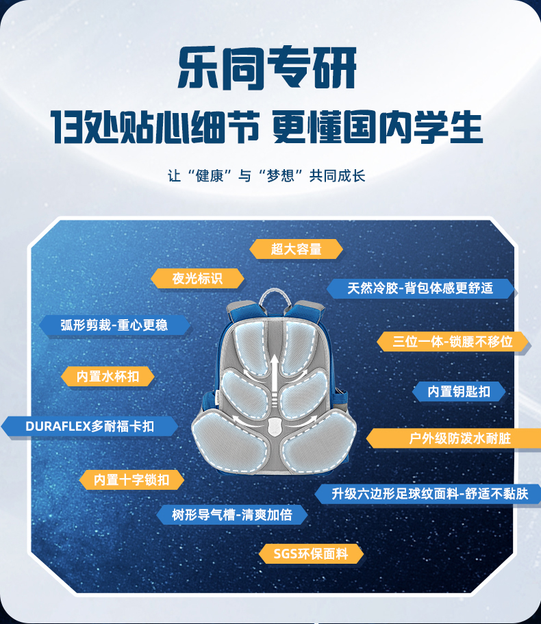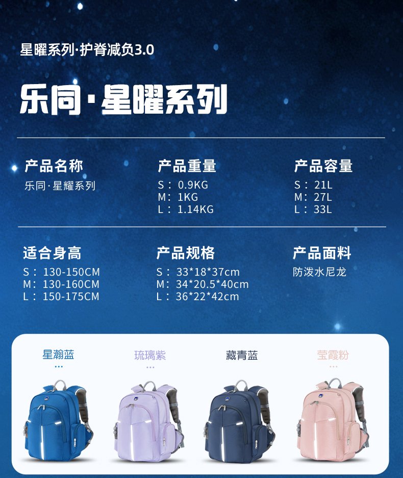 【新品】乐同星曜3.0护脊减负书包中小学生大容量背包21L+27L+33L