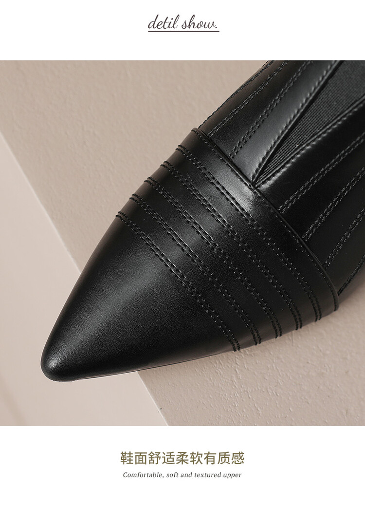 【预售5天】气质名媛尖头高跟鞋女新款法式时尚拼接真皮软底细跟浅口单鞋