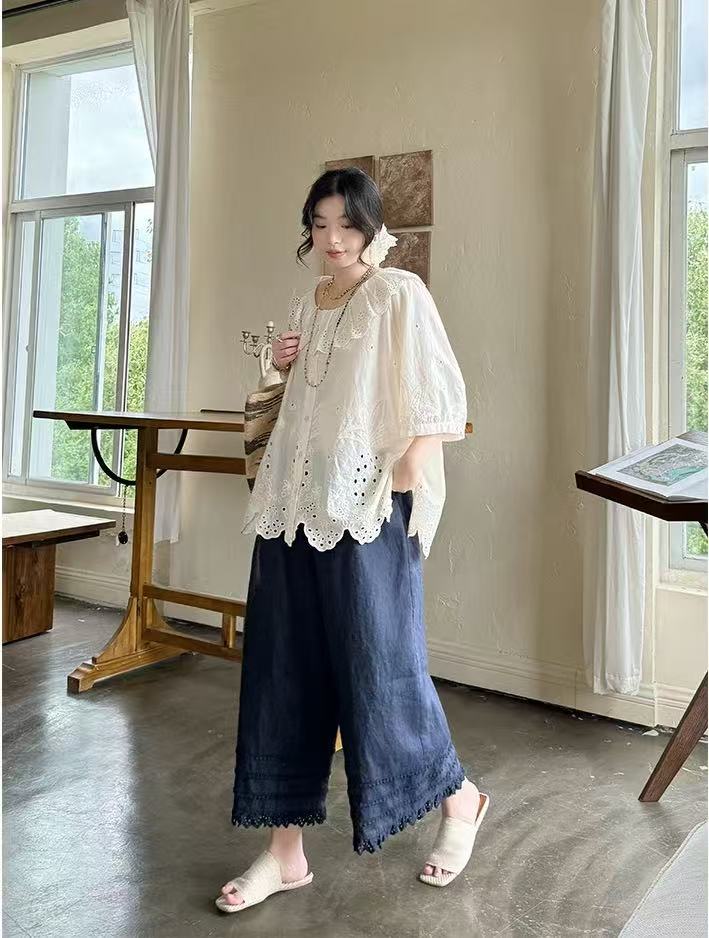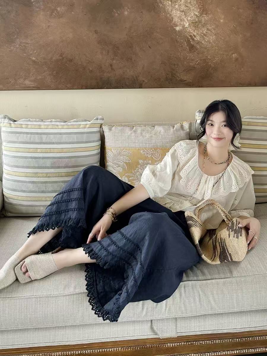 【新品推荐】6590松弛感蛋糕多层蕾丝拼接夏季清凉休闲裤-喜出