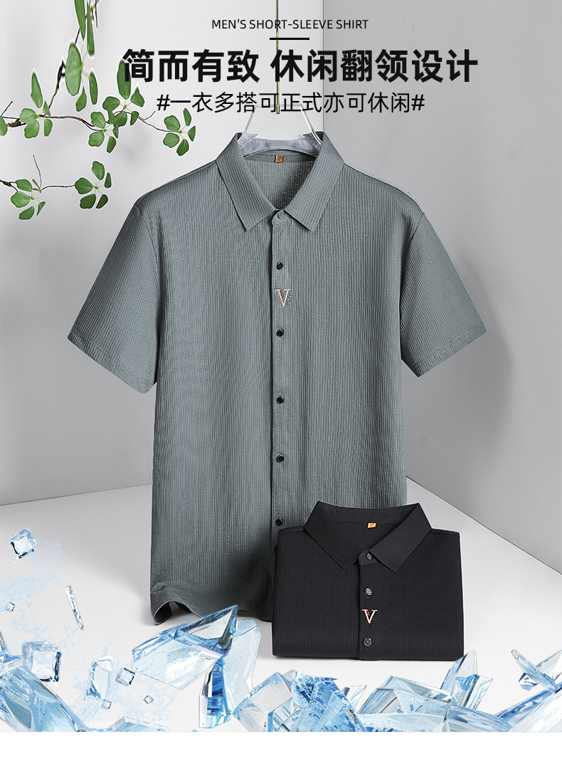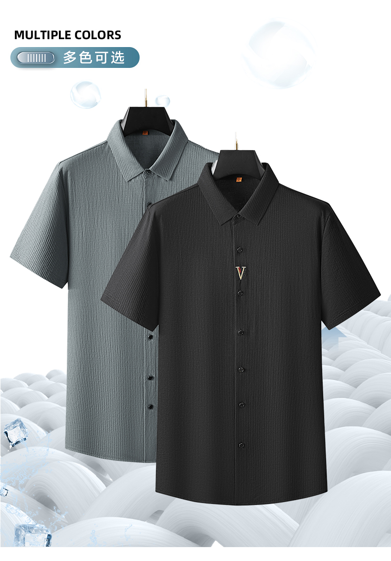 【棉质】【DWP】大依优型大码短袖衬衫透气翻领体恤加肥加大男士大号弹力透气舒适夏季半袖