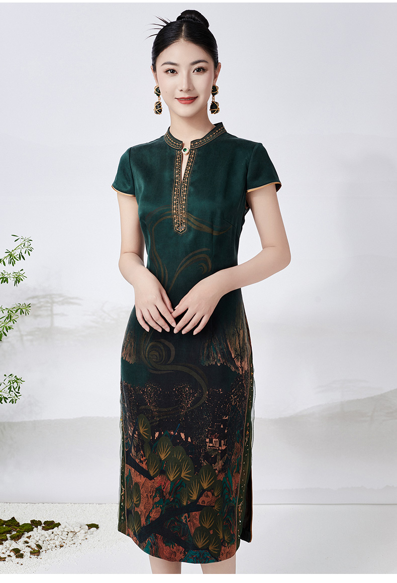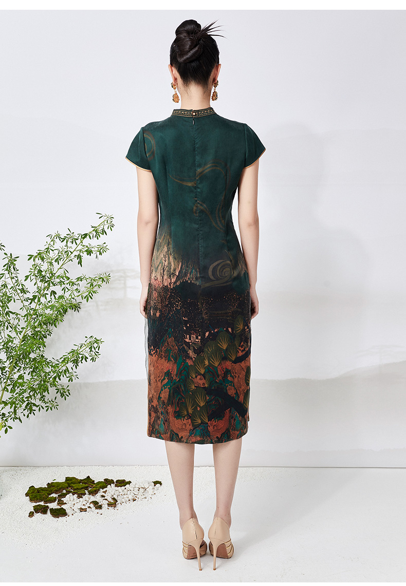 【东篱采园图】【香云纱】乔万尼真丝连衣裙缎面龟纹重磅26mm桑蚕丝收腰气质富贵感ET2E281
