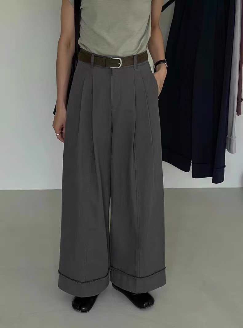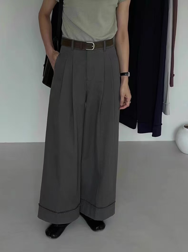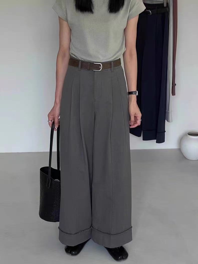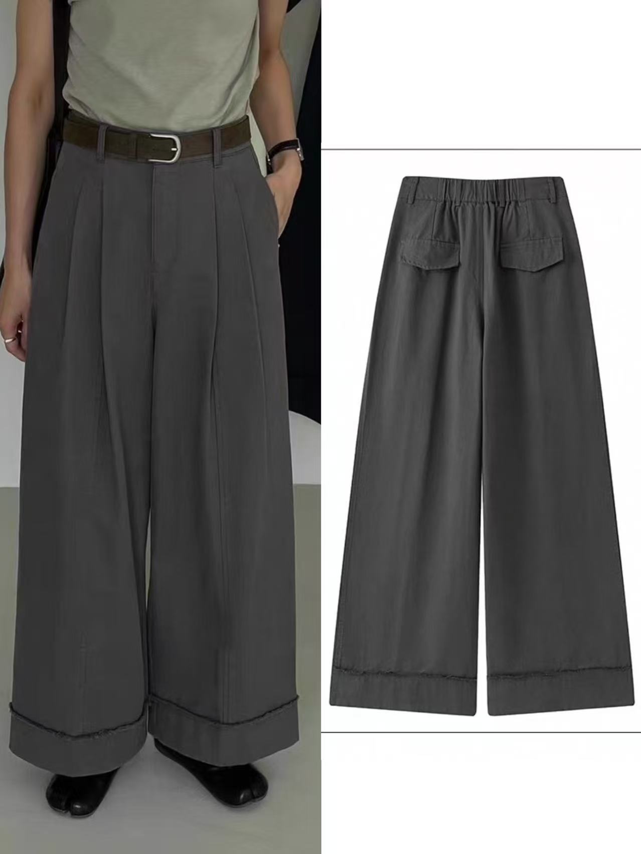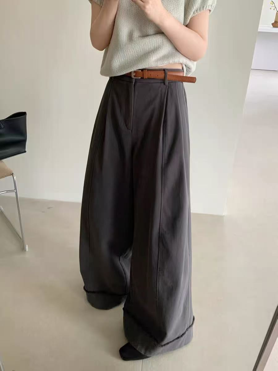 12.20清仓促,不支持退一韩系6316高腰毛边阔腿裤女2025秋季搭休闲显瘦直筒裤长裤子(无腰带)-喜出