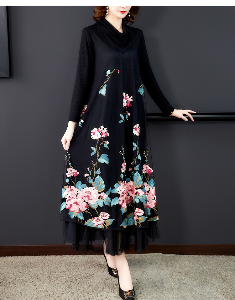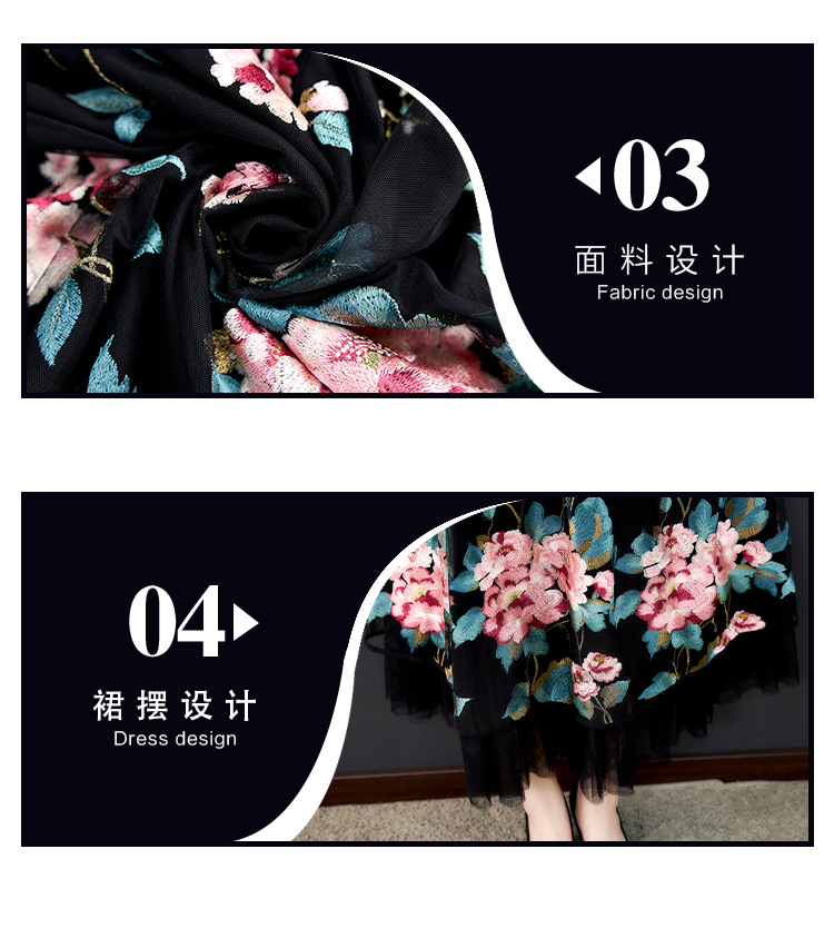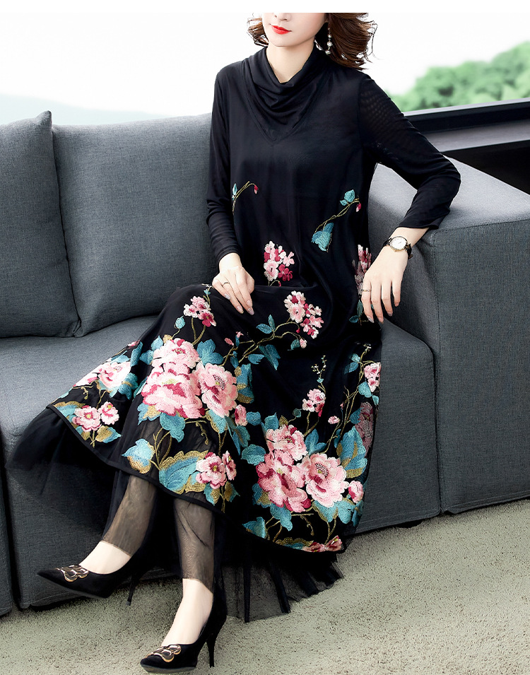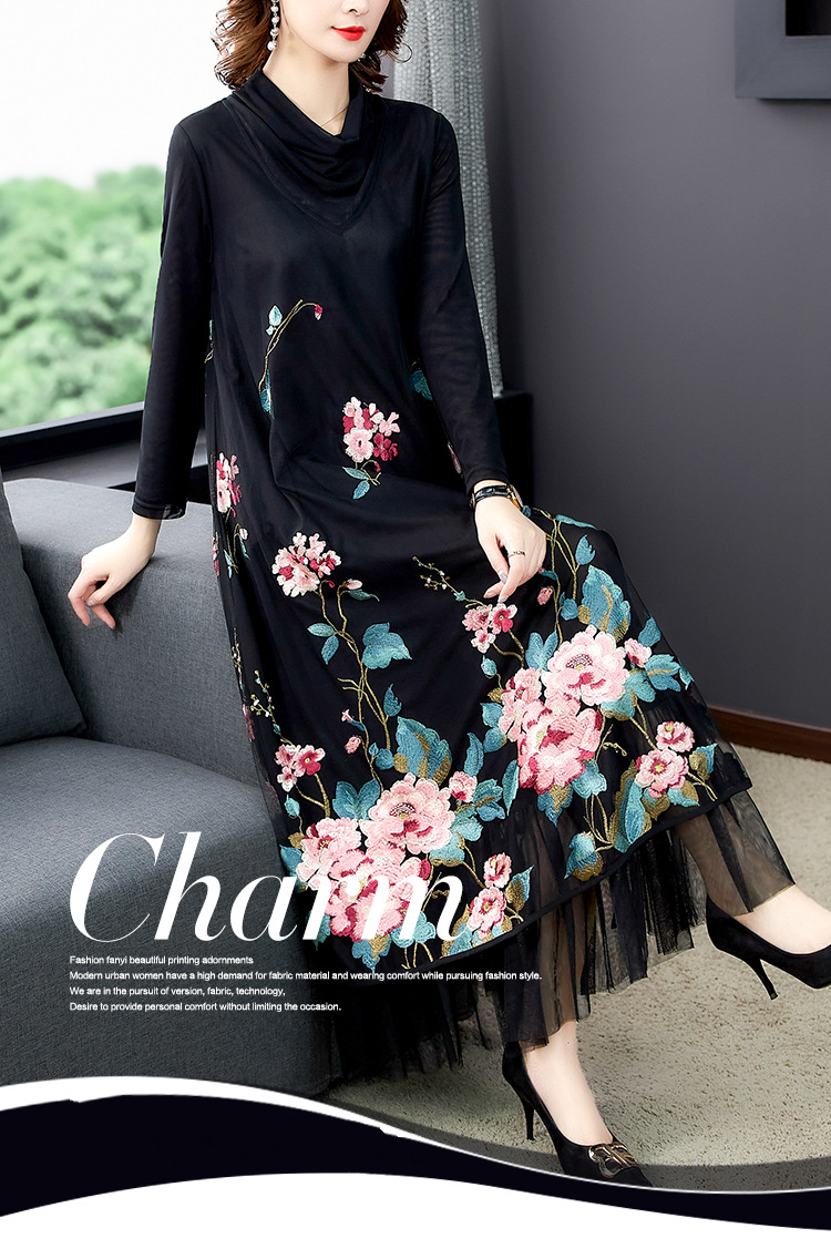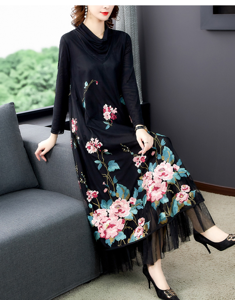 XYX-9277重工刺绣连衣裙高贵洋气妈妈装民族风2020秋冬新款刺绣裙子