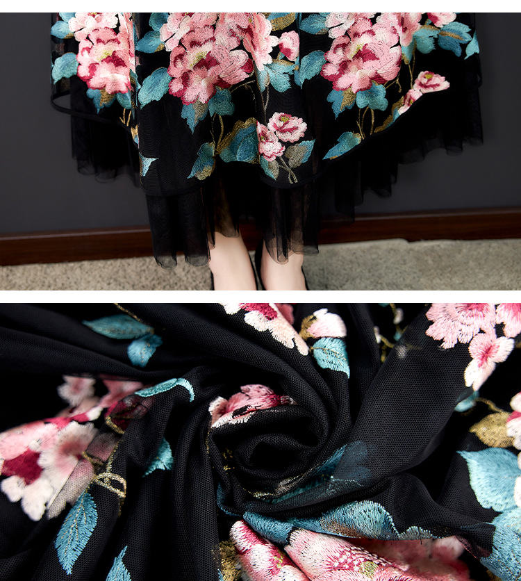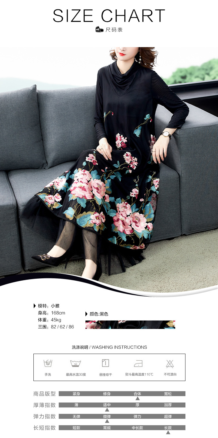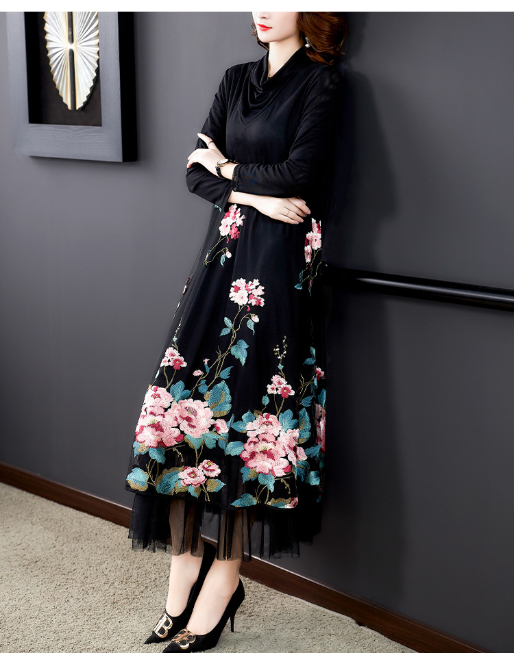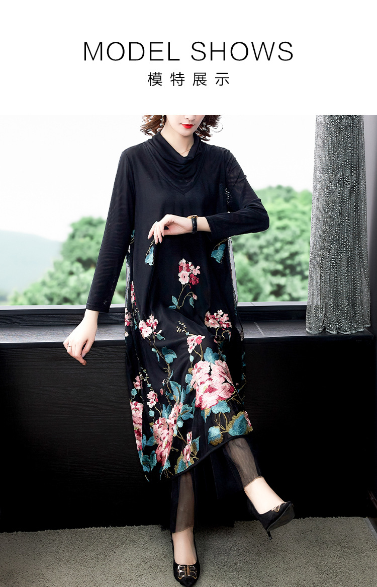 XYX-9277重工刺绣连衣裙高贵洋气妈妈装民族风2020秋冬新款刺绣裙子