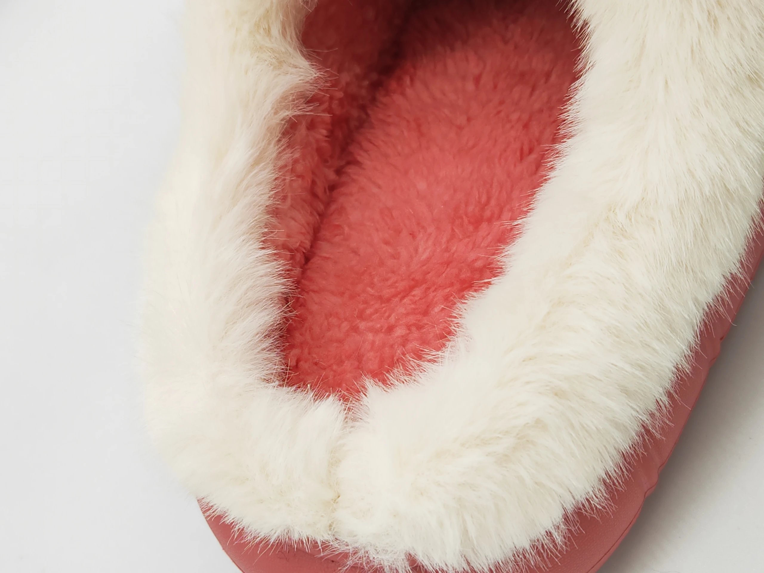 把脚伸进去,毛绒迅速贴合双脚,暖烘烘的