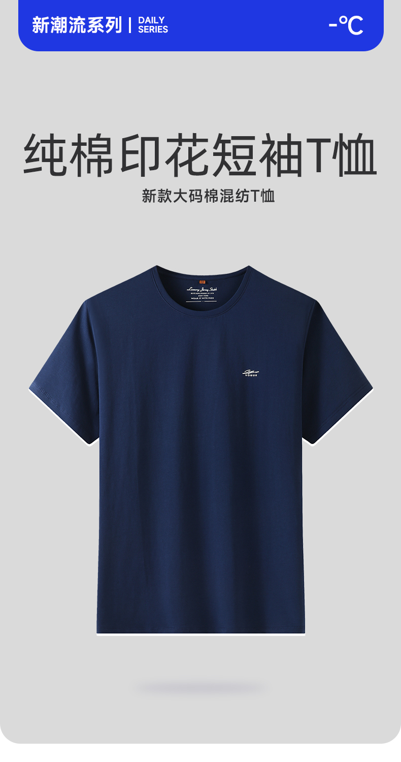 【新款DWP】大依优型大码纯棉圆领短袖T恤加肥加大弹力透气宽松休闲男装半袖