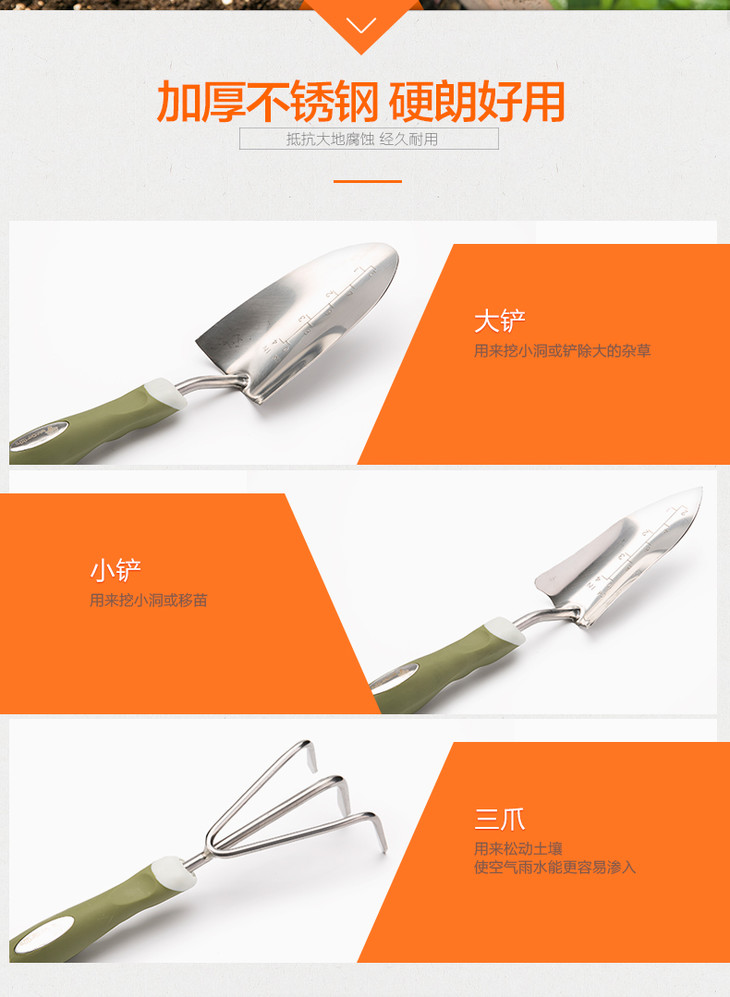 沃施worth 园艺工具三件套不锈钢种花小铲子盆栽种菜种花工具套装