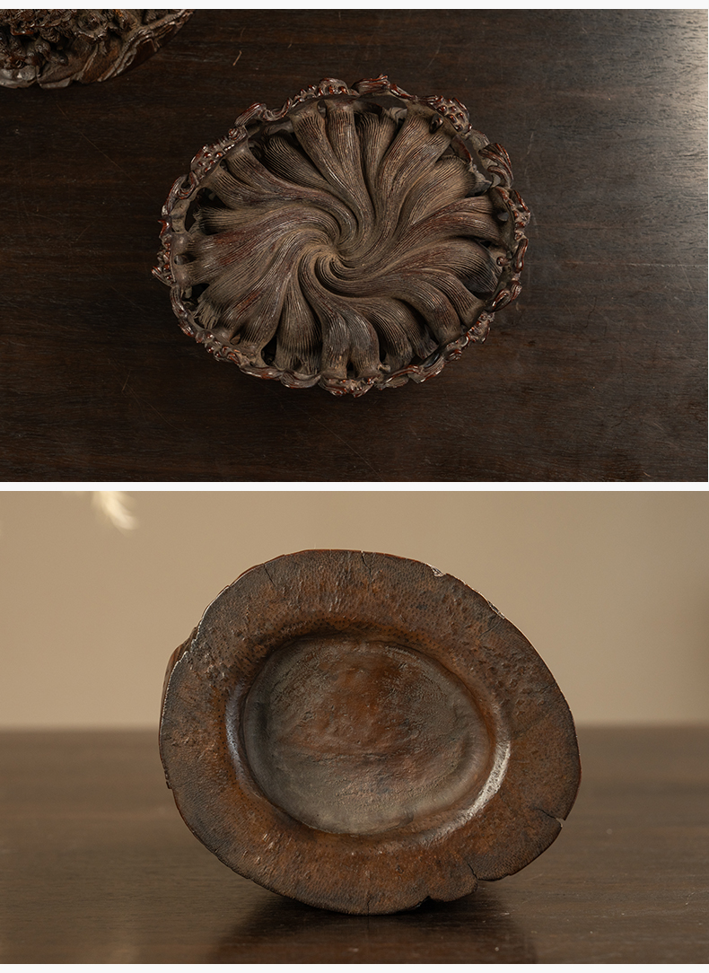 清 红木透雕拐子纹器座