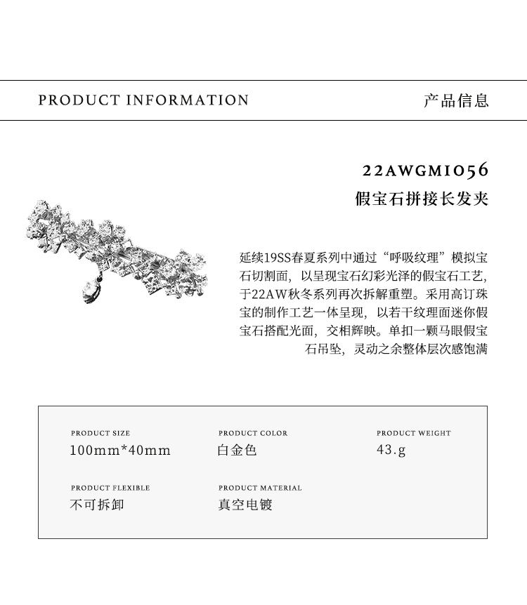 ATELIERSO 22AW克拉系列 假宝石拼接长发夹
