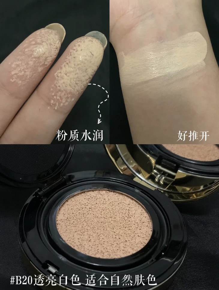 YSL星钻水墨气垫#B20👍包装、味道、造型都是颜控的爱!像星空银河一样闪耀🤩,每颗星钻都五彩斑斓的,blingbling的想想出门约会姐妹局带上它,我就是最闪亮的仔🙇!上脸妆效自然不假白,持久度也不输粉底液,半哑光奶油肌妆效这一点吃得死死的,天生好皮肤的既视感,服帖度100分。带SPF23/PA++防晒指数。👉#B20透亮白,自然偏白提亮气色,适合大部分亚洲人。