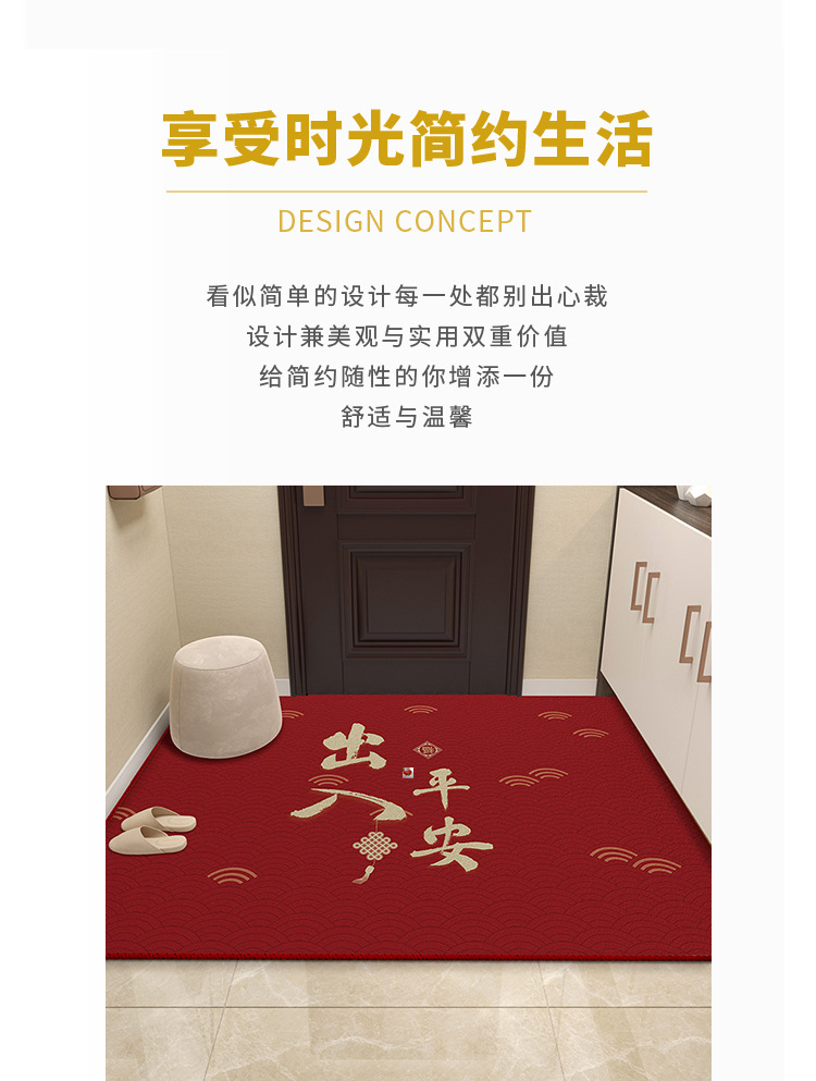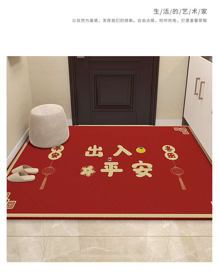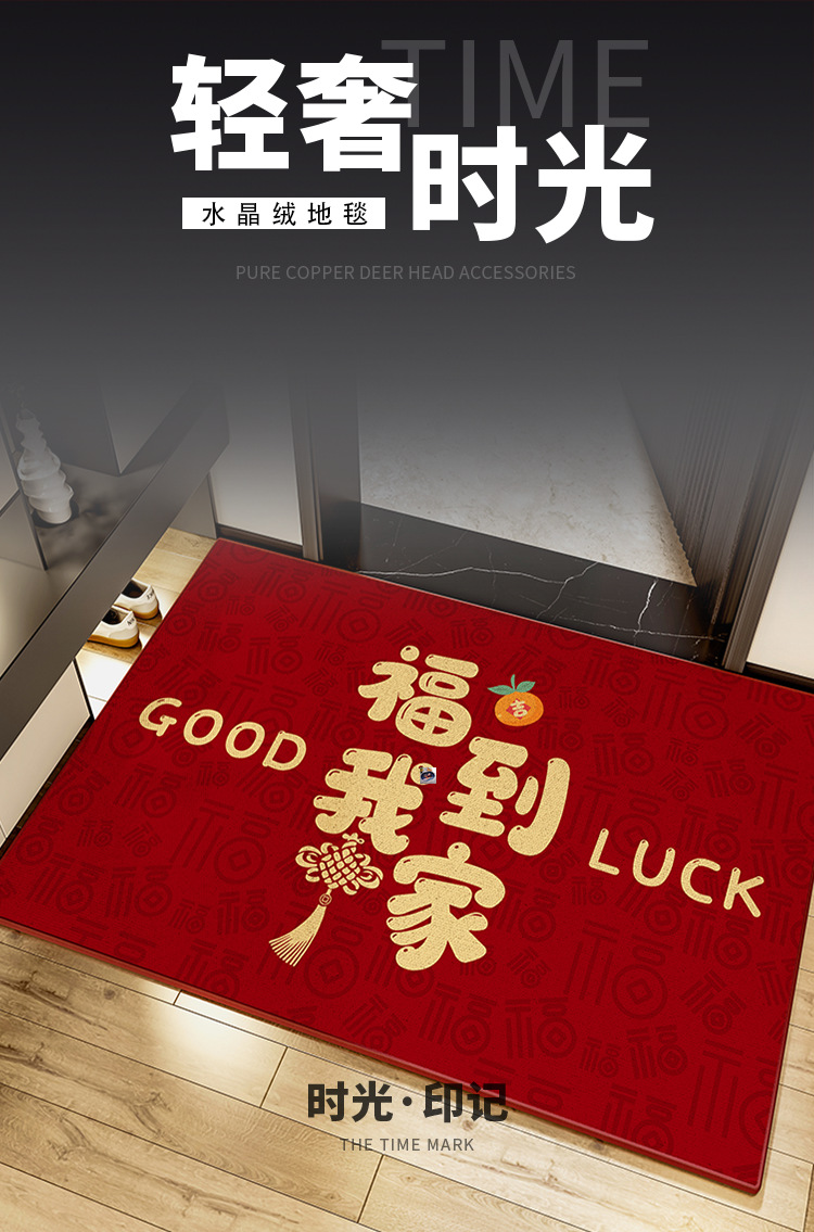 【新年好物!水晶绒地毯】红色入户门地垫高级感 吸水防滑脚踏垫 家用耐脏易打理 水晶绒地垫-QQ