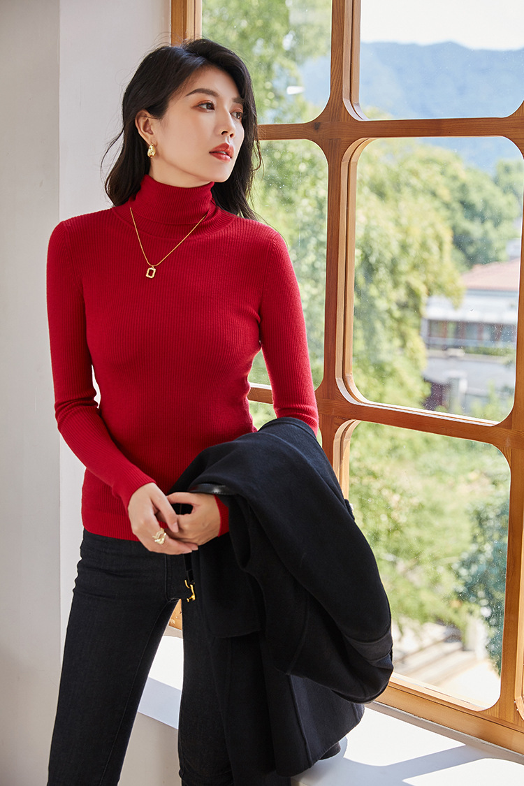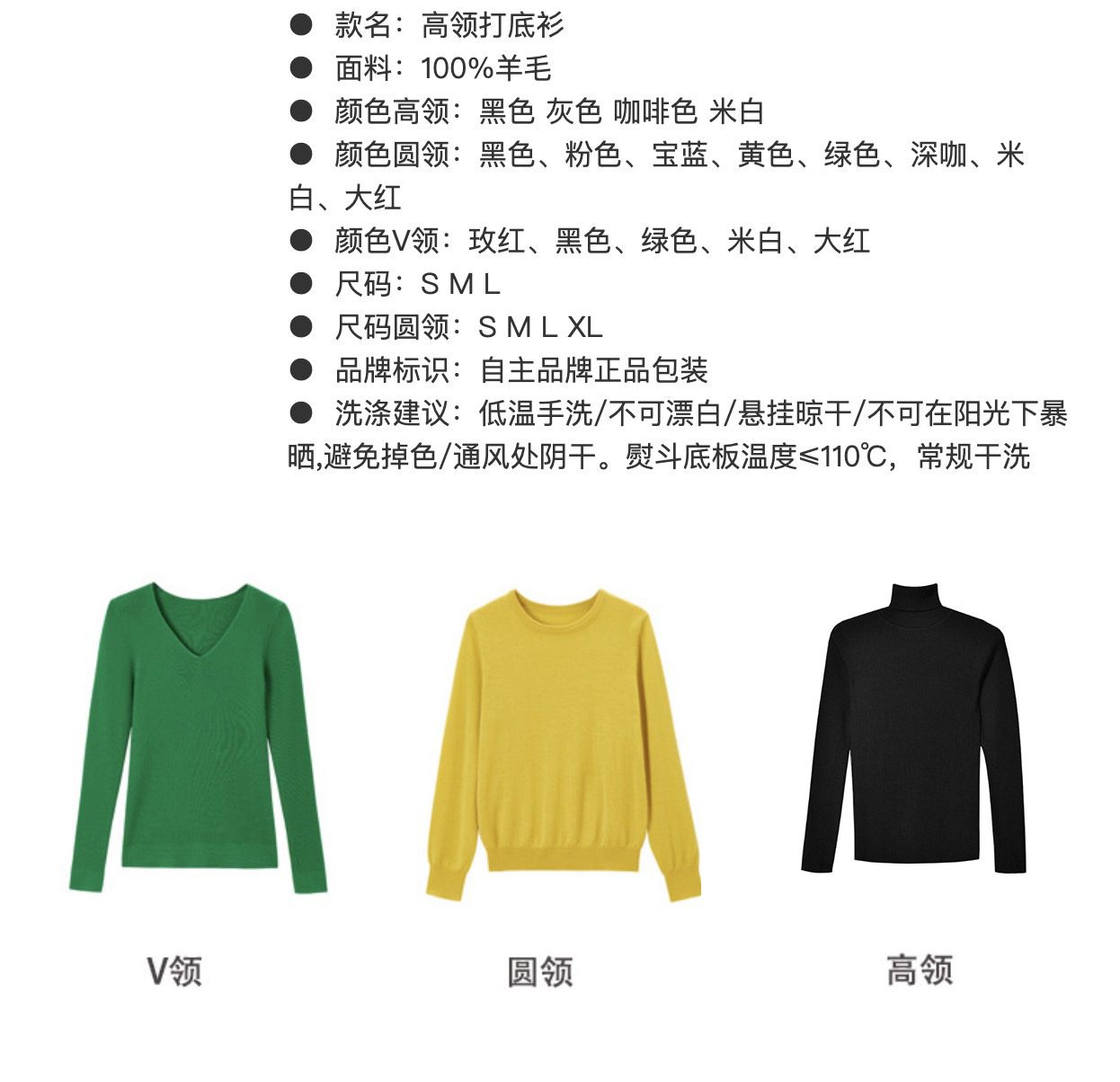 【高货sh】全新升级【铂金会员220/天猫299/差价79】(95610) 洛诗琳秋新款高领长袖修身弹力羊毛针织基础打底衫上衣女