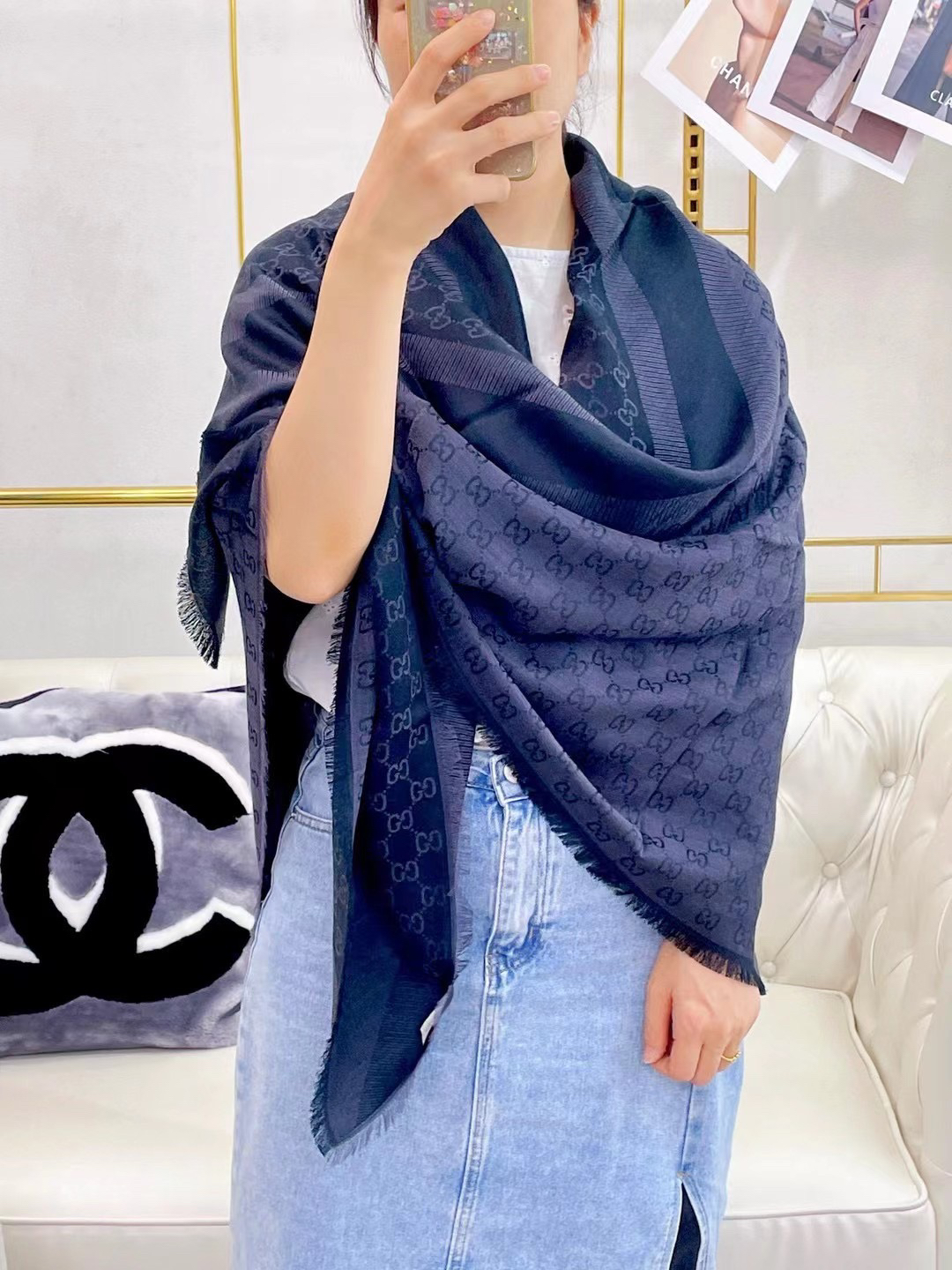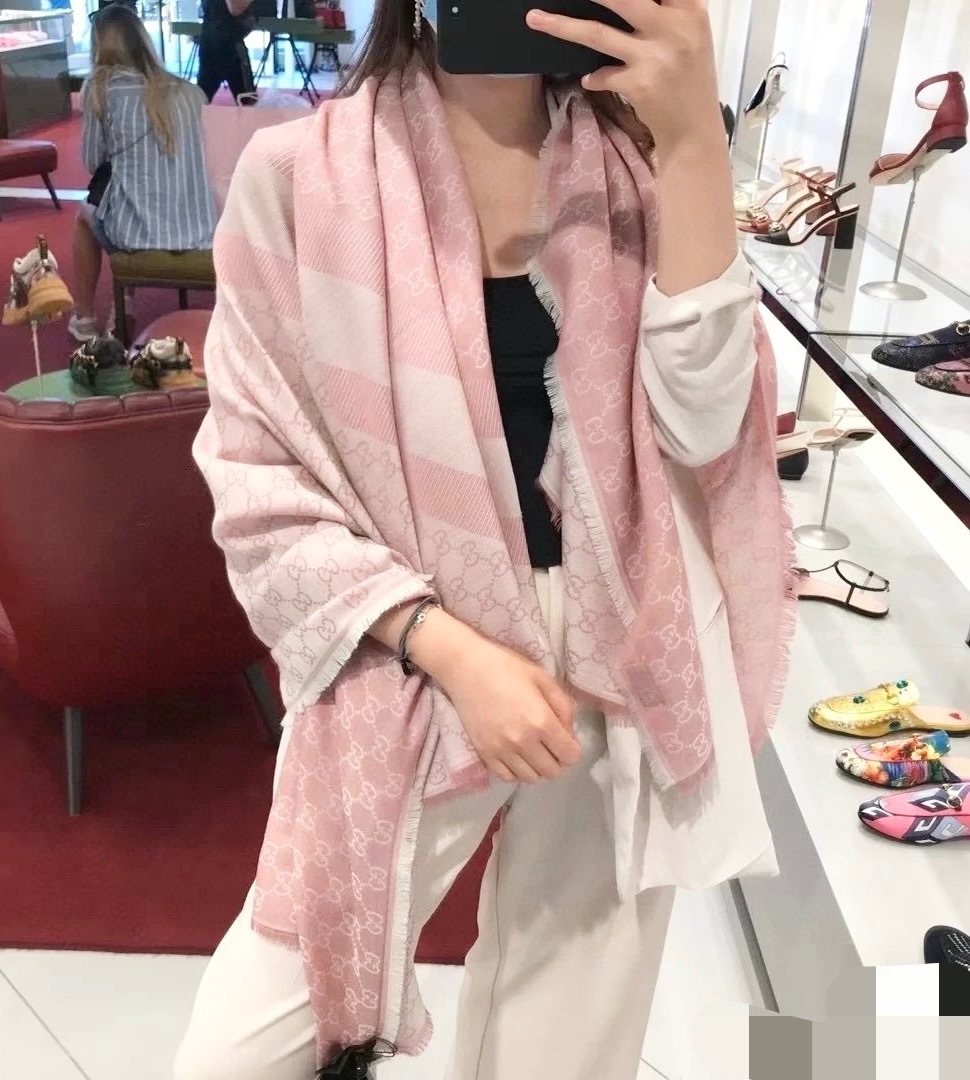 🎉🎉G家经典斜纹双色上新啦💋,爸爸去哪儿贝儿同款🔱大S同款,最最经典的花色和字母图案,😍对角两边不同颜色设计💪,手感超级好👍,有着山羊绒的细腻柔糯感✨,又有真丝的丝滑质感👍方巾140*140,材质羊绒,(此款围巾非常精致,非市场普通货,欢迎对比!)