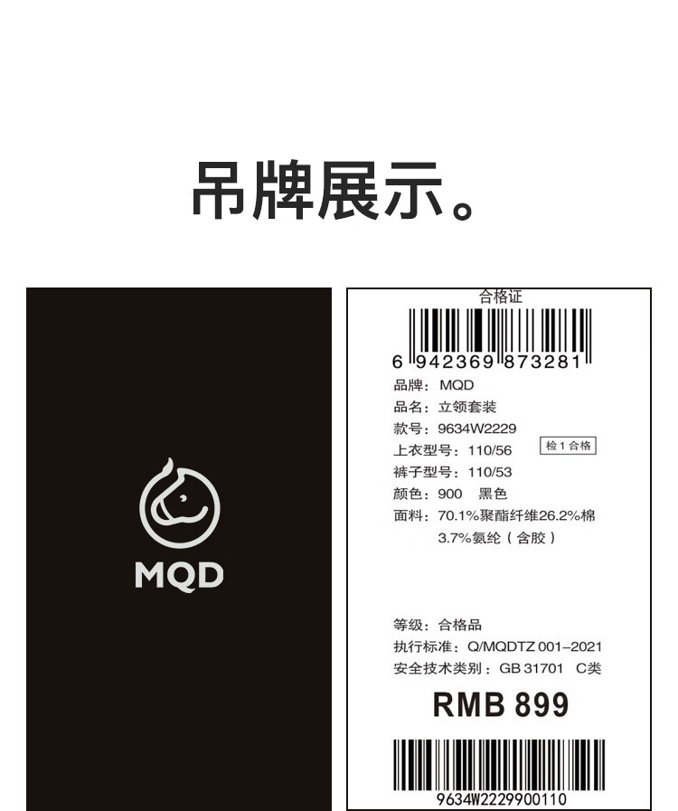 【MQD】童装上衣+裤男大童冬新款学院风运动立领套装