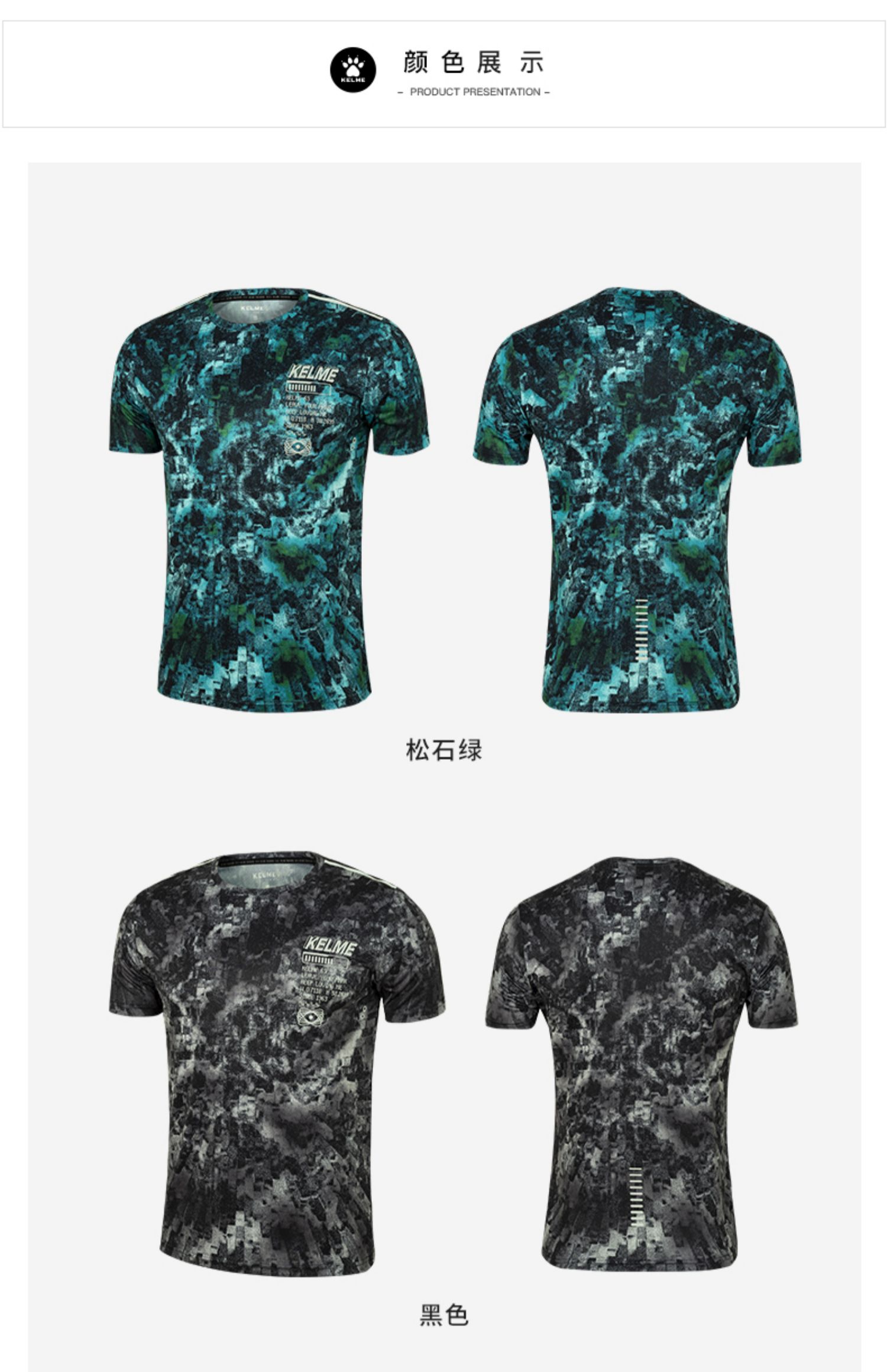 卡尔美运动休闲短袖夏季新款男士圆领综训跑步速干T恤