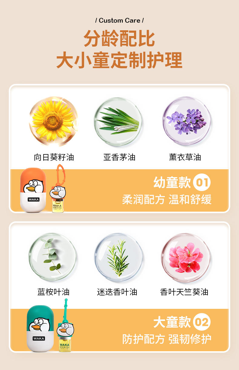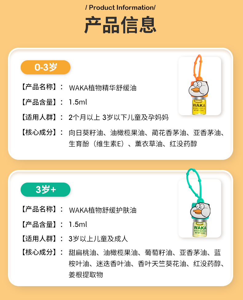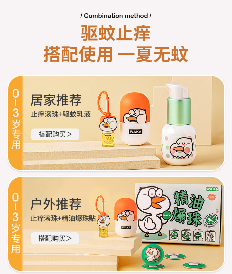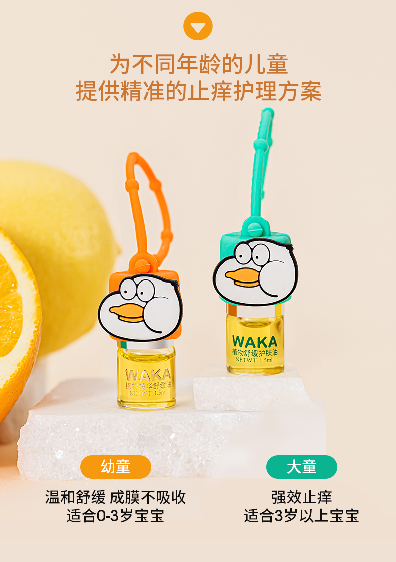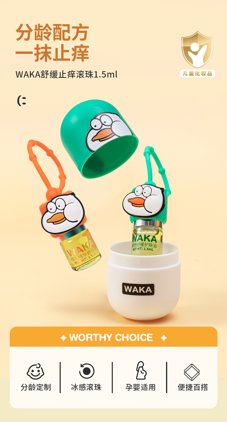 WAKA婴儿童宝宝孕妇专用分龄止痒舒缓消包滚珠小橙鸭小绿鸭 【0-3岁幼童】小橙鸭
