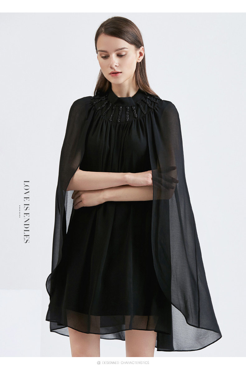 EITIE爱特爱女装早秋新品拼接披肩钻饰短款礼服连衣裙女5677303