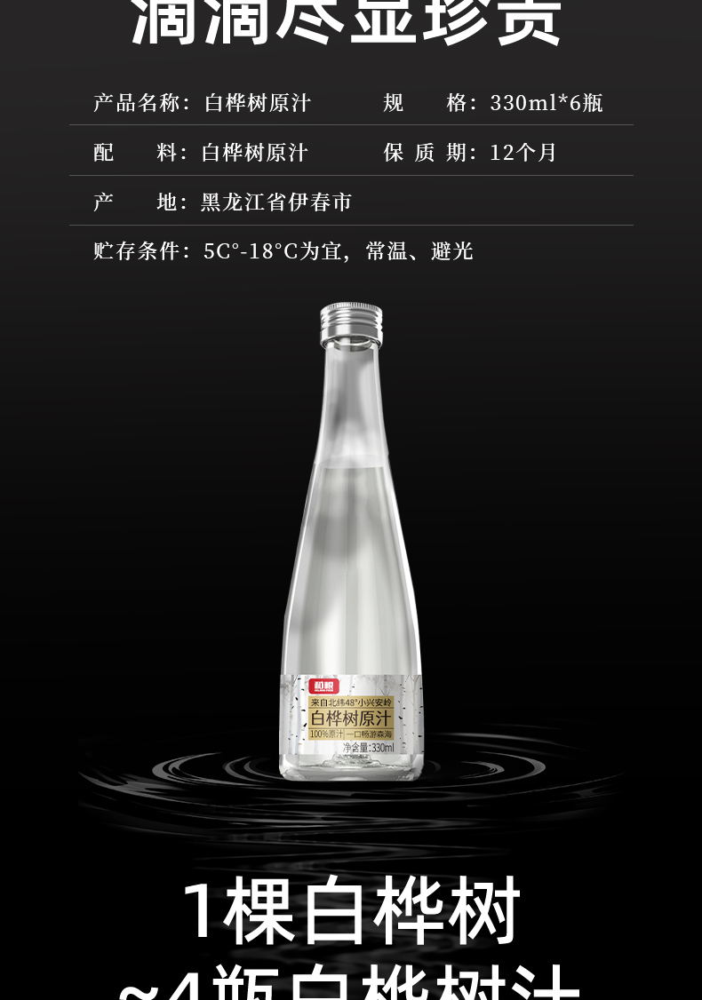 【礼盒】伊春白桦树原汁330ml*6瓶/箱 100%NFC 无添加