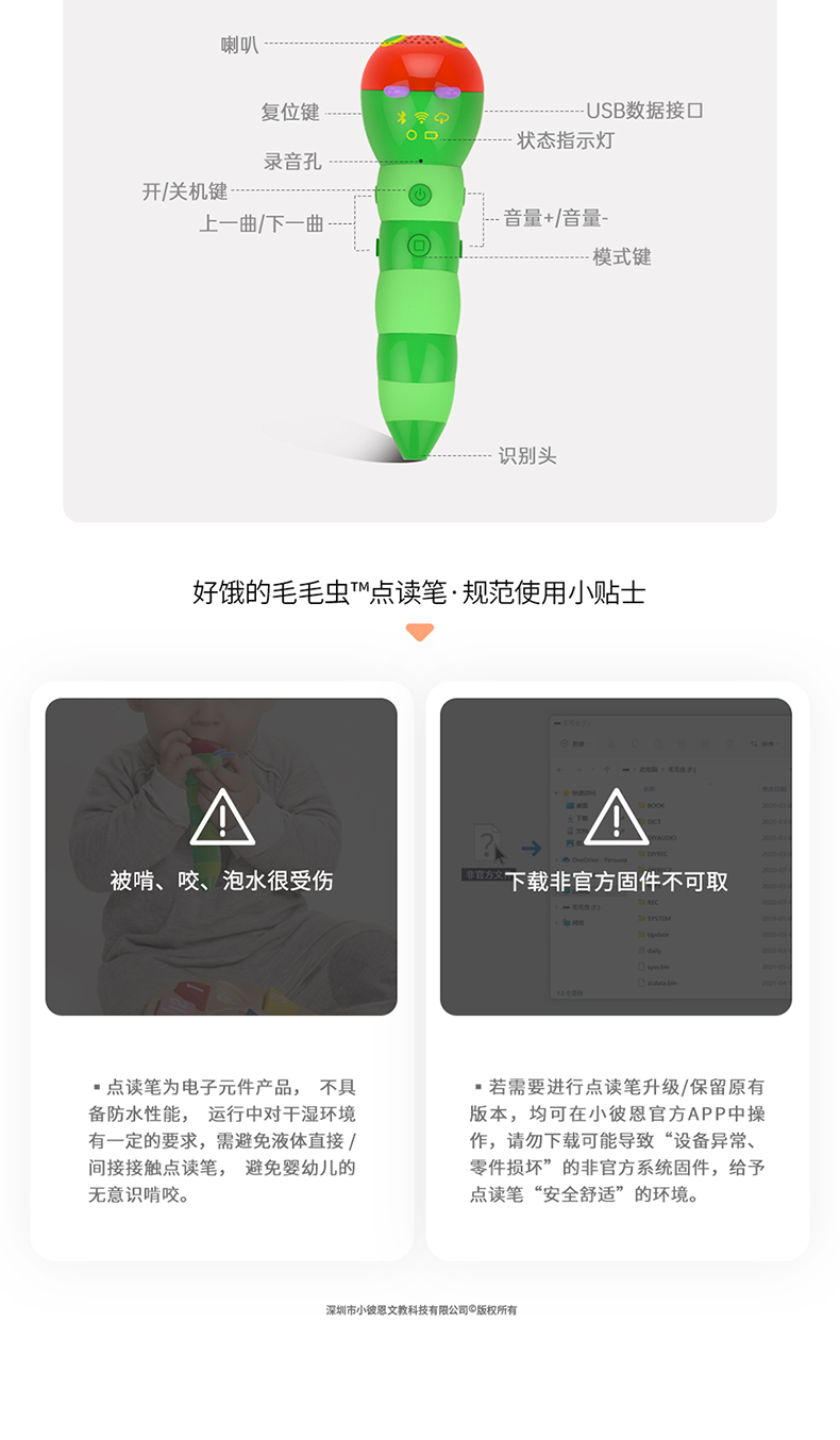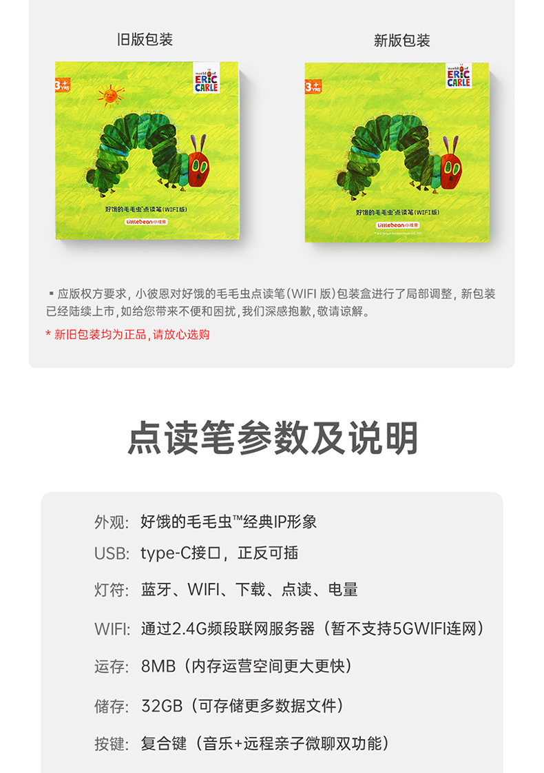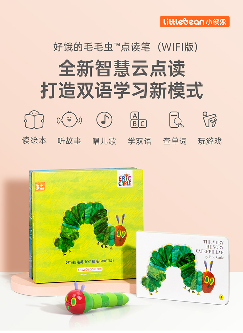 【小彼恩出品】小彼恩 好饿的毛毛虫点读笔 WiFi版毛毛虫点读笔礼盒装(32G) 一个早教亲子游戏