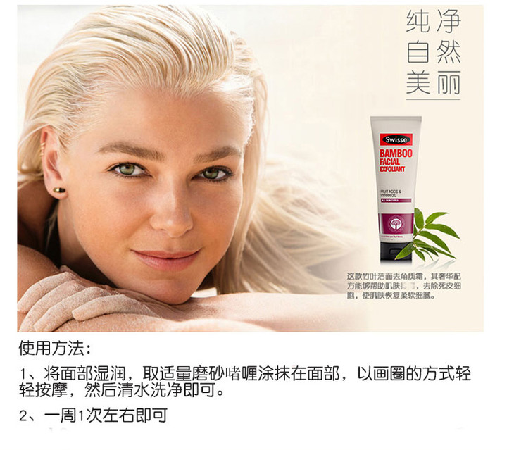 澳洲Swisse竹子精华嫩肤洁面乳洗面奶去角质霜死皮磨砂膏啫喱