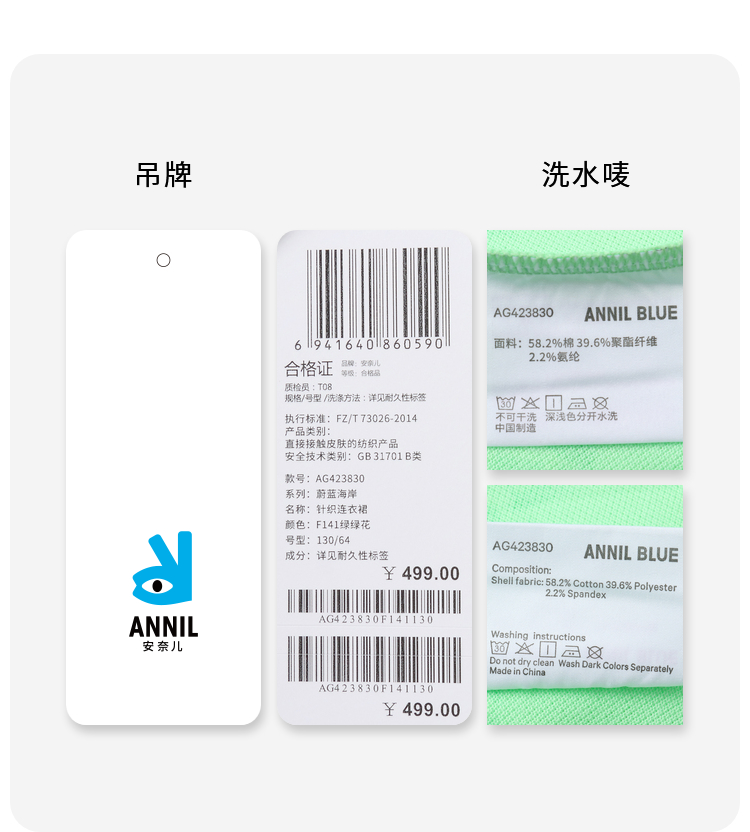 女童凉感POLO连衣裙裙子BLUE新款安奈儿童装实体店同款AG423830