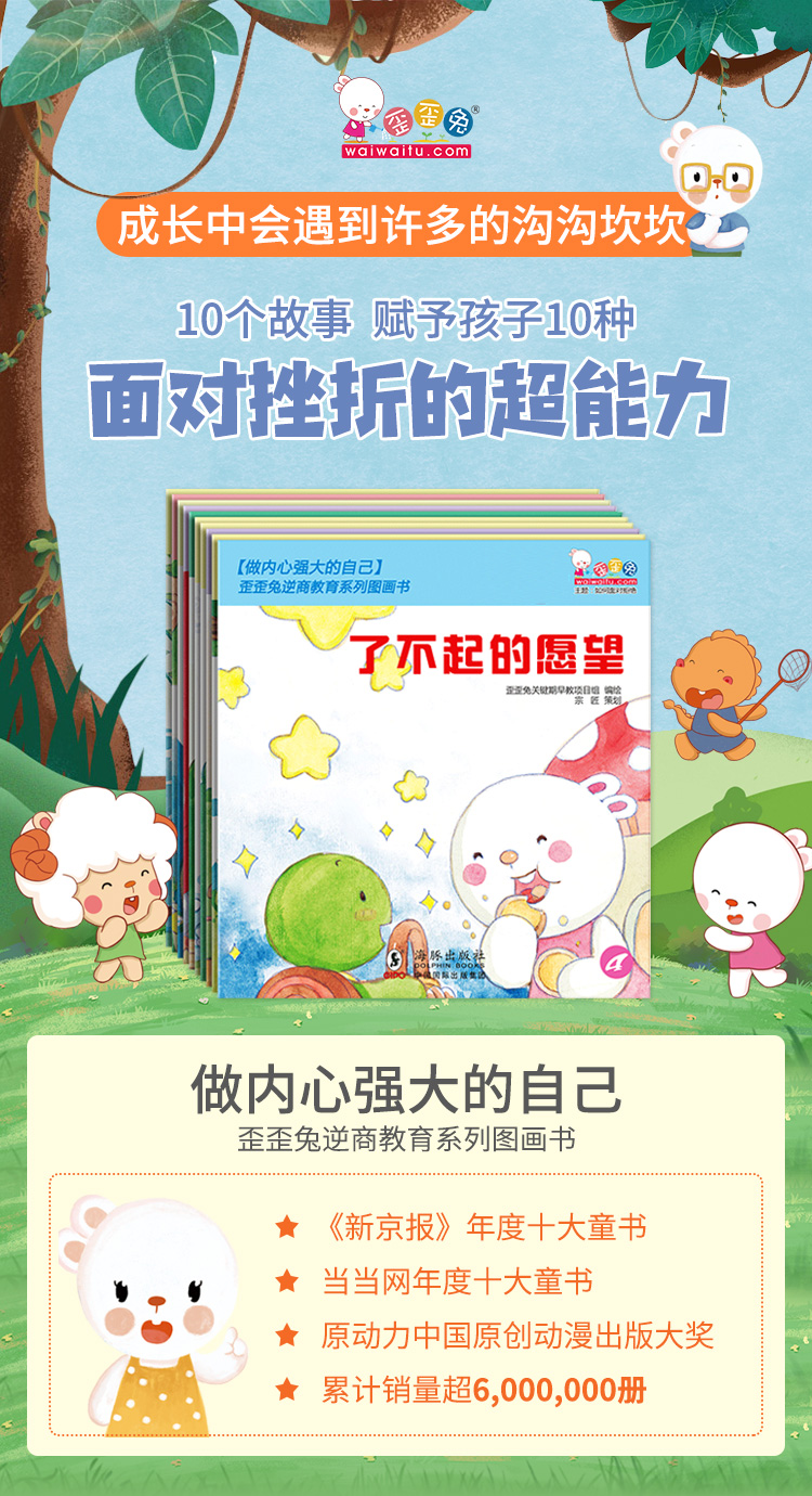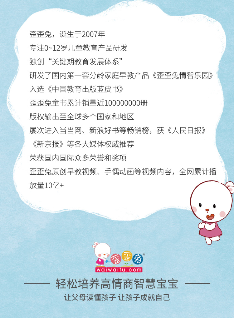 - 歪歪兔,诞生于2007年,专注0-12岁儿童教育产品研发。原创童书销量逾1亿册,音视频播放总量10亿+。