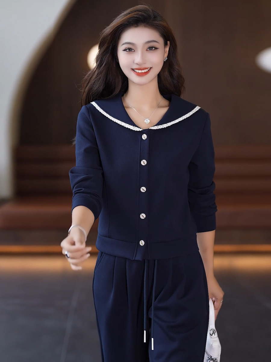 YM 8133时尚休闲运动套装翻领卫衣阔腿裤两件套洋气显瘦 商品图3