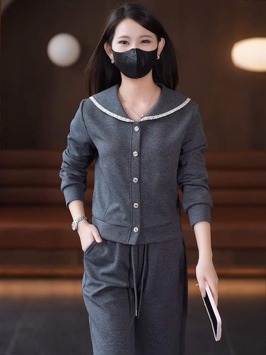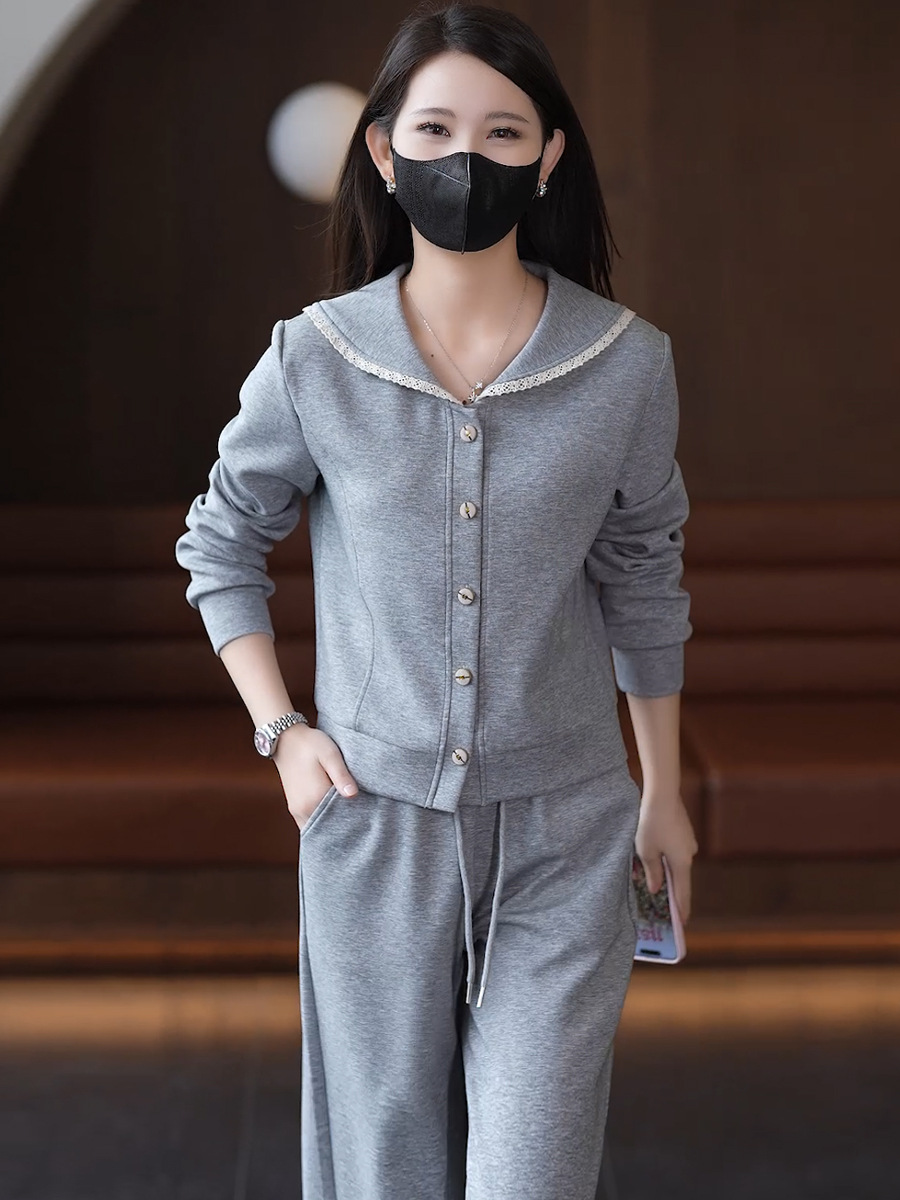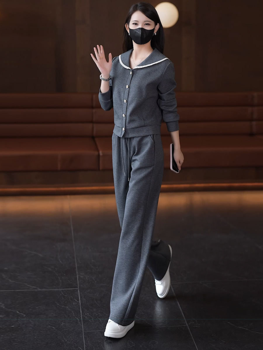YM 8133时尚休闲运动套装翻领卫衣阔腿裤两件套洋气显瘦 商品图4
