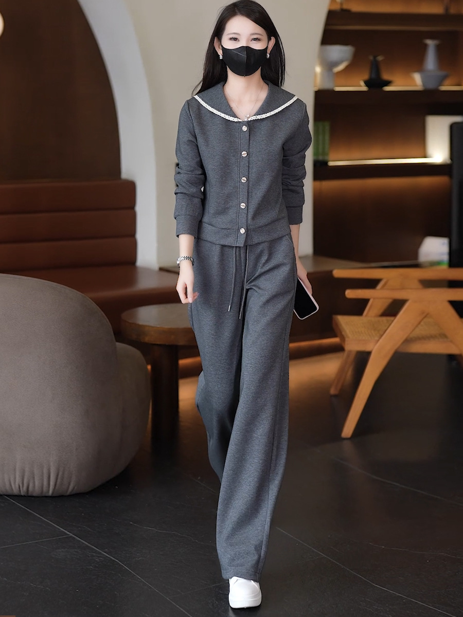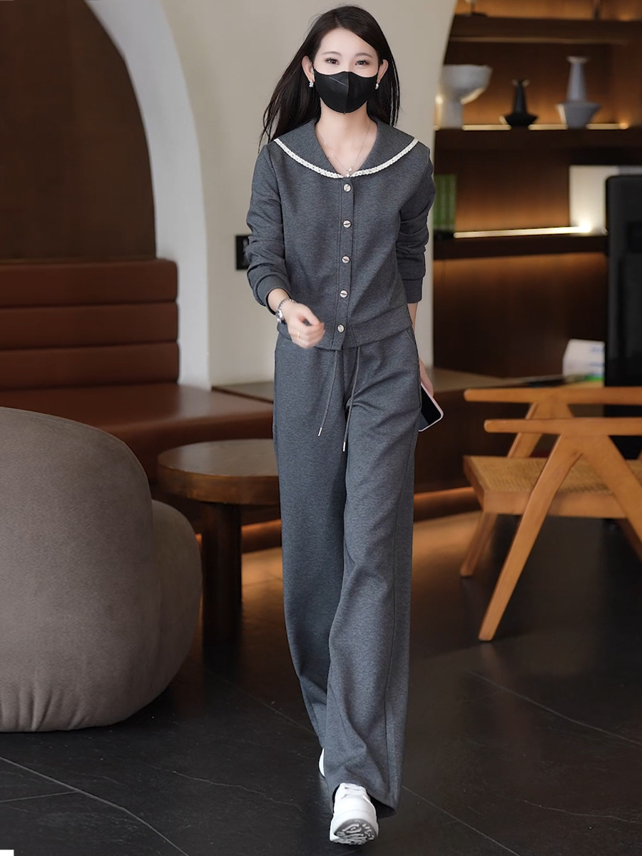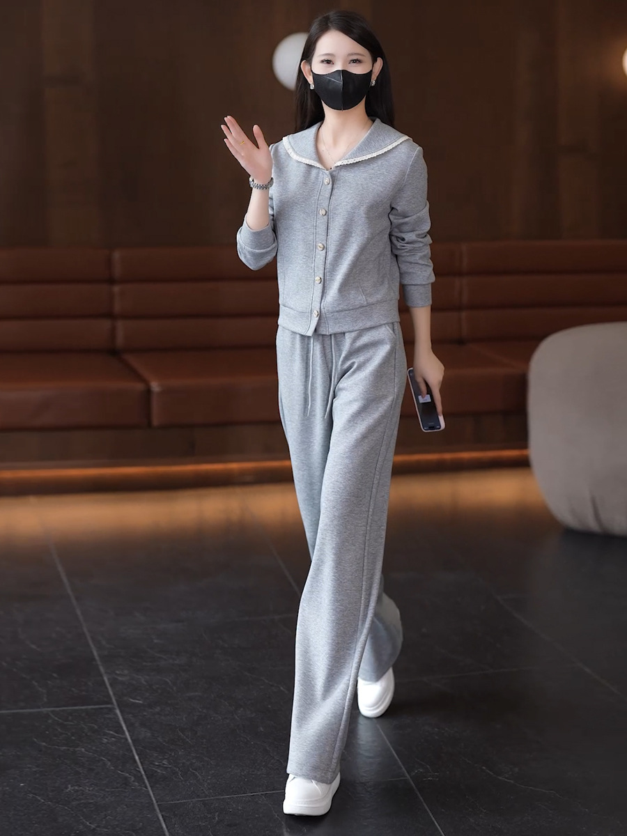 YM 8133时尚休闲运动套装翻领卫衣阔腿裤两件套洋气显瘦 商品图0