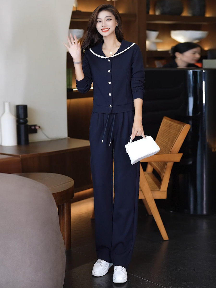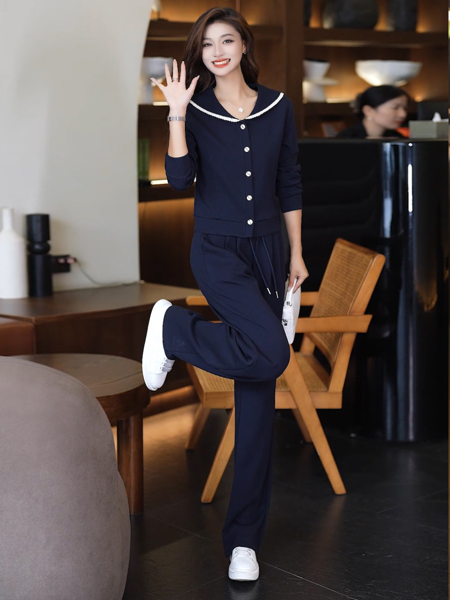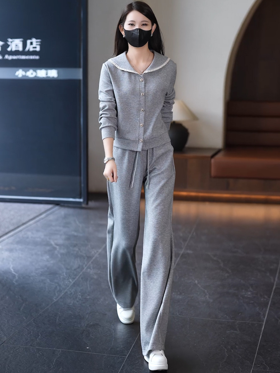 YM 8133时尚休闲运动套装翻领卫衣阔腿裤两件套洋气显瘦 商品图0