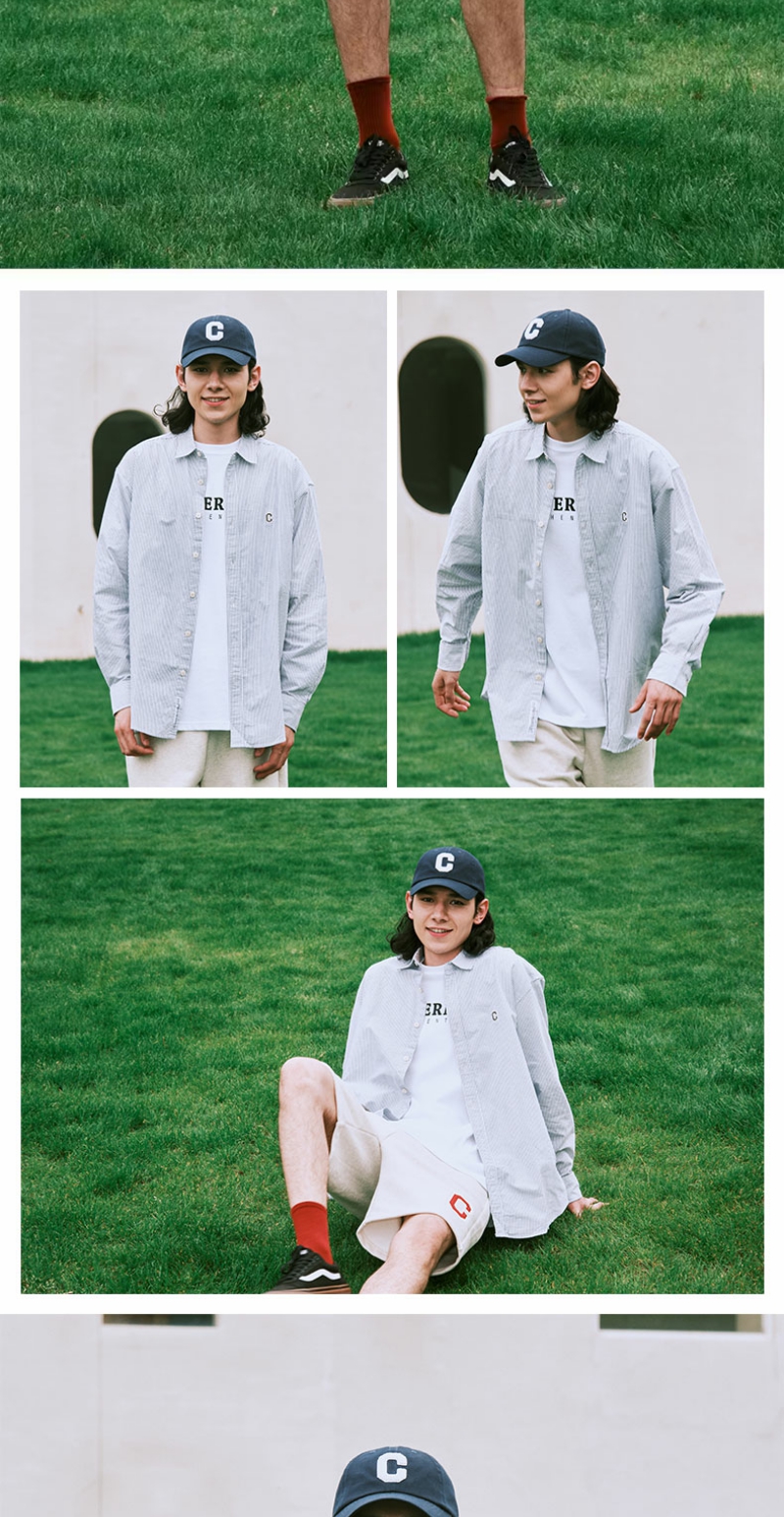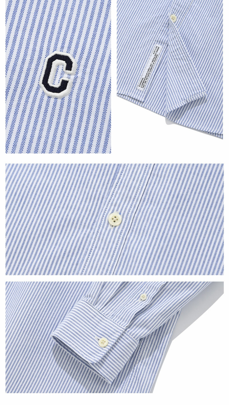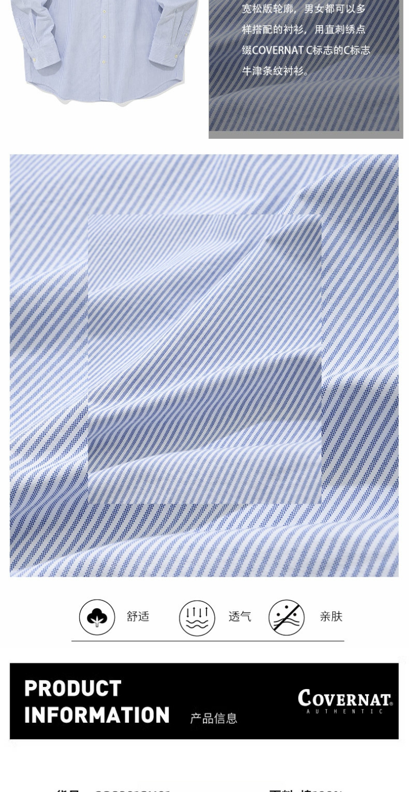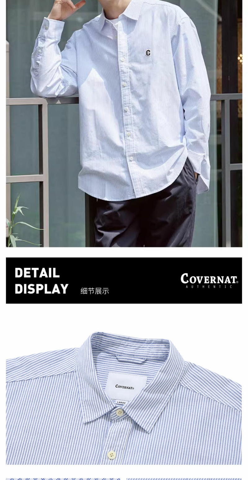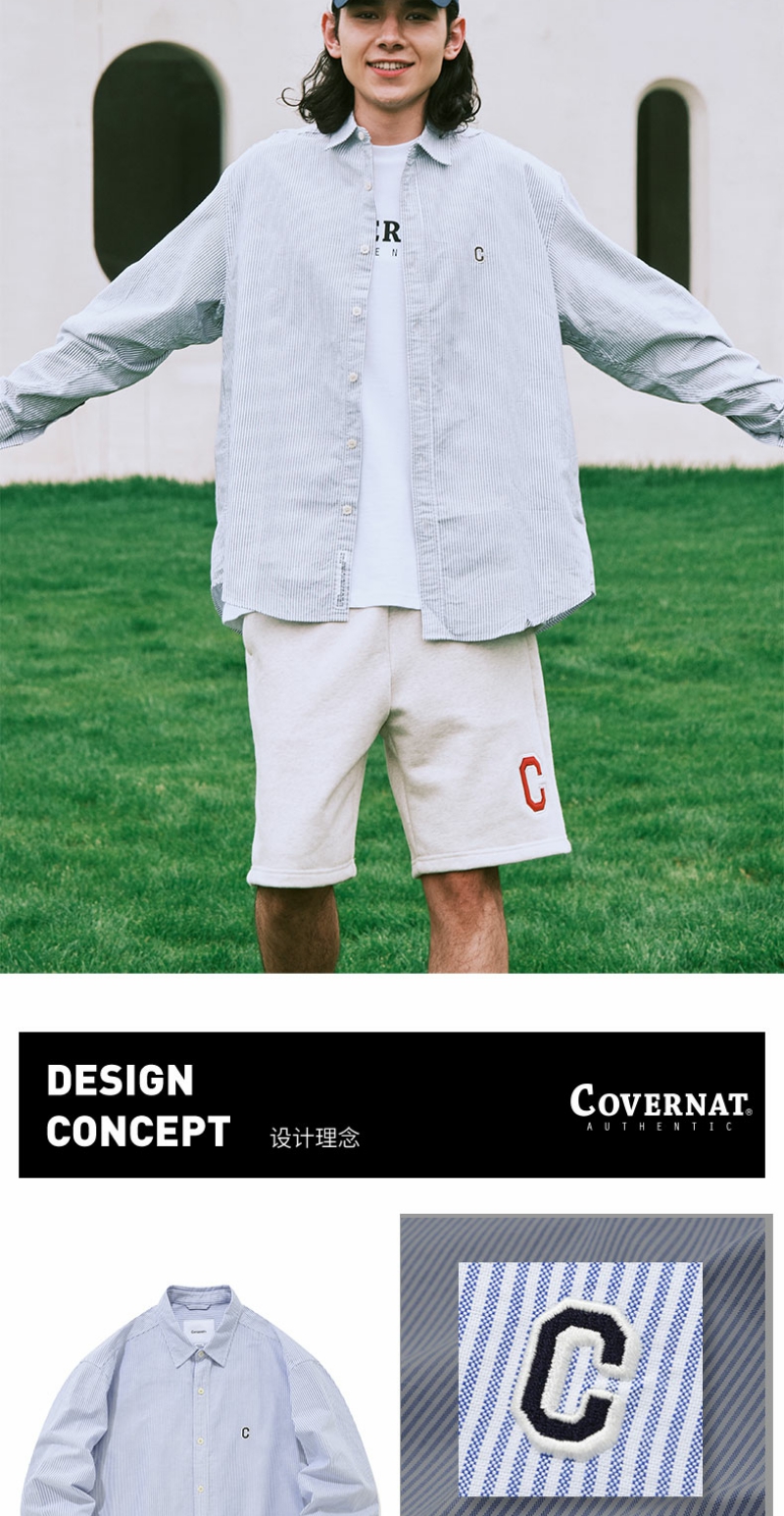 Covernat阔版衬衫春季新品小C标志牛津条纹衬衫潮牌内搭男上衣CO2301SH01