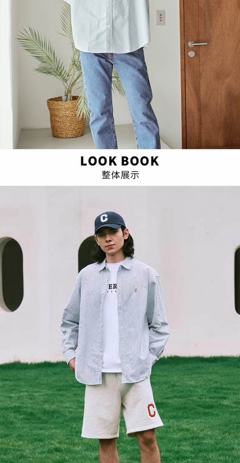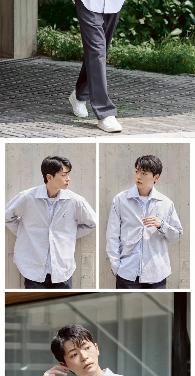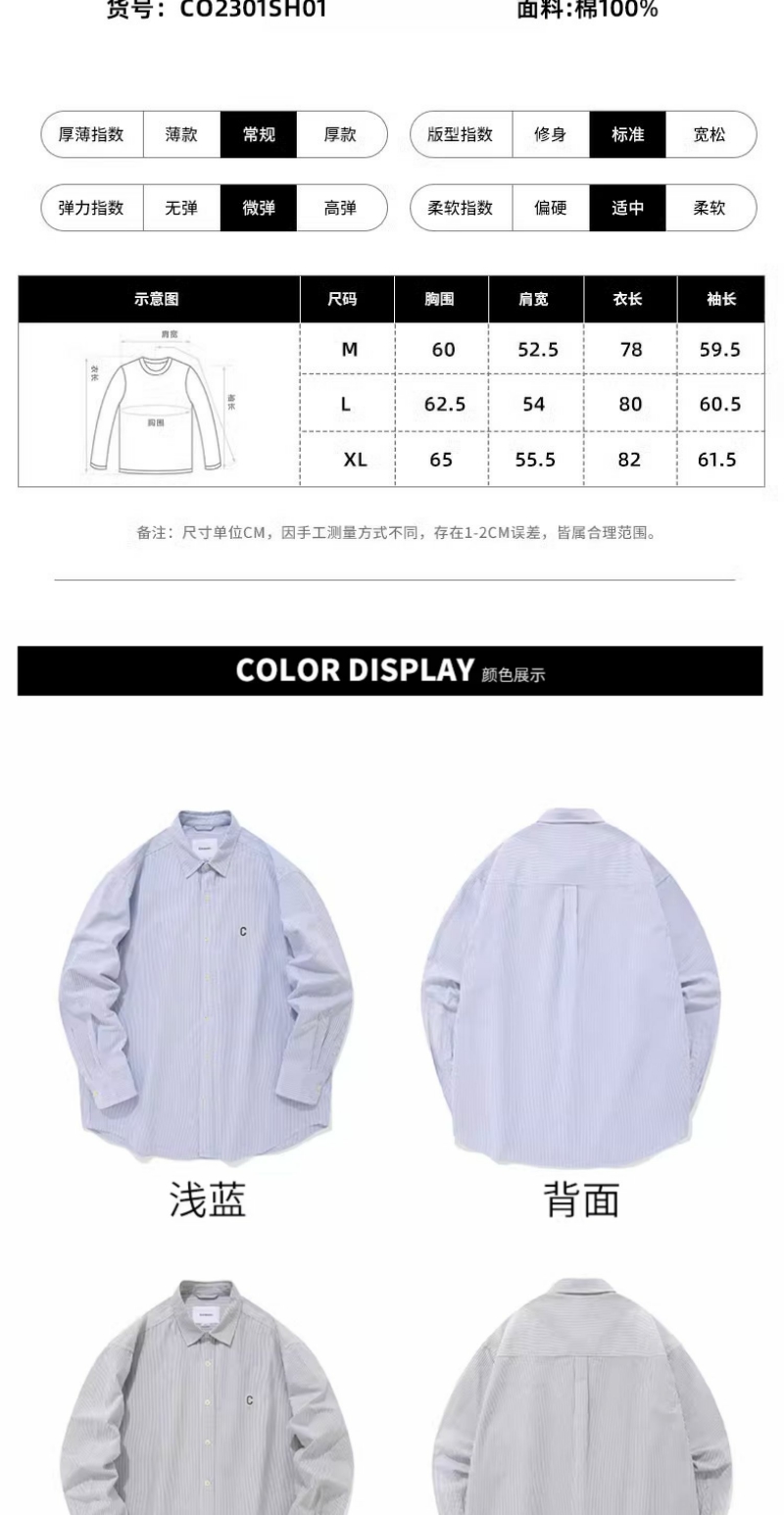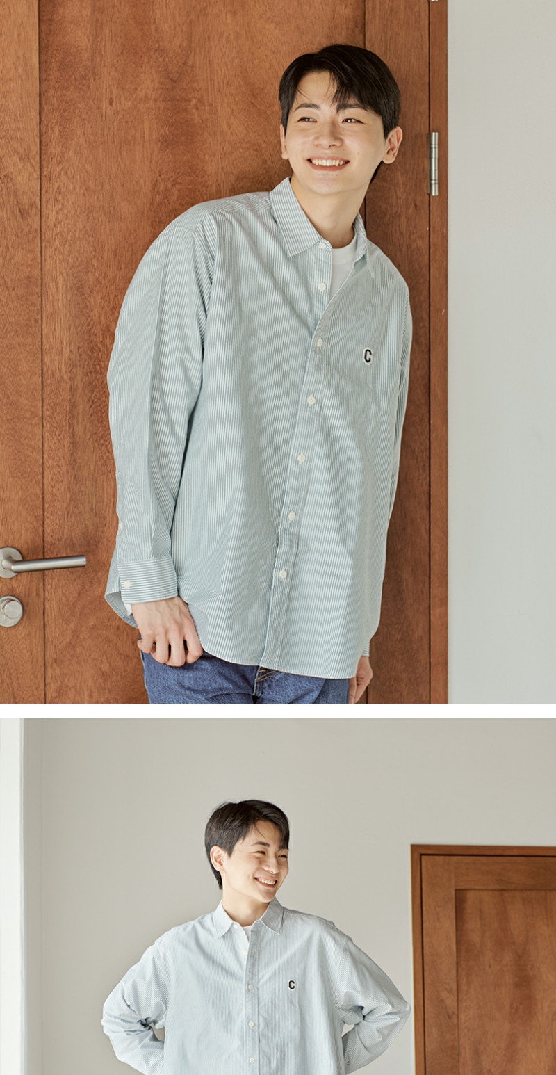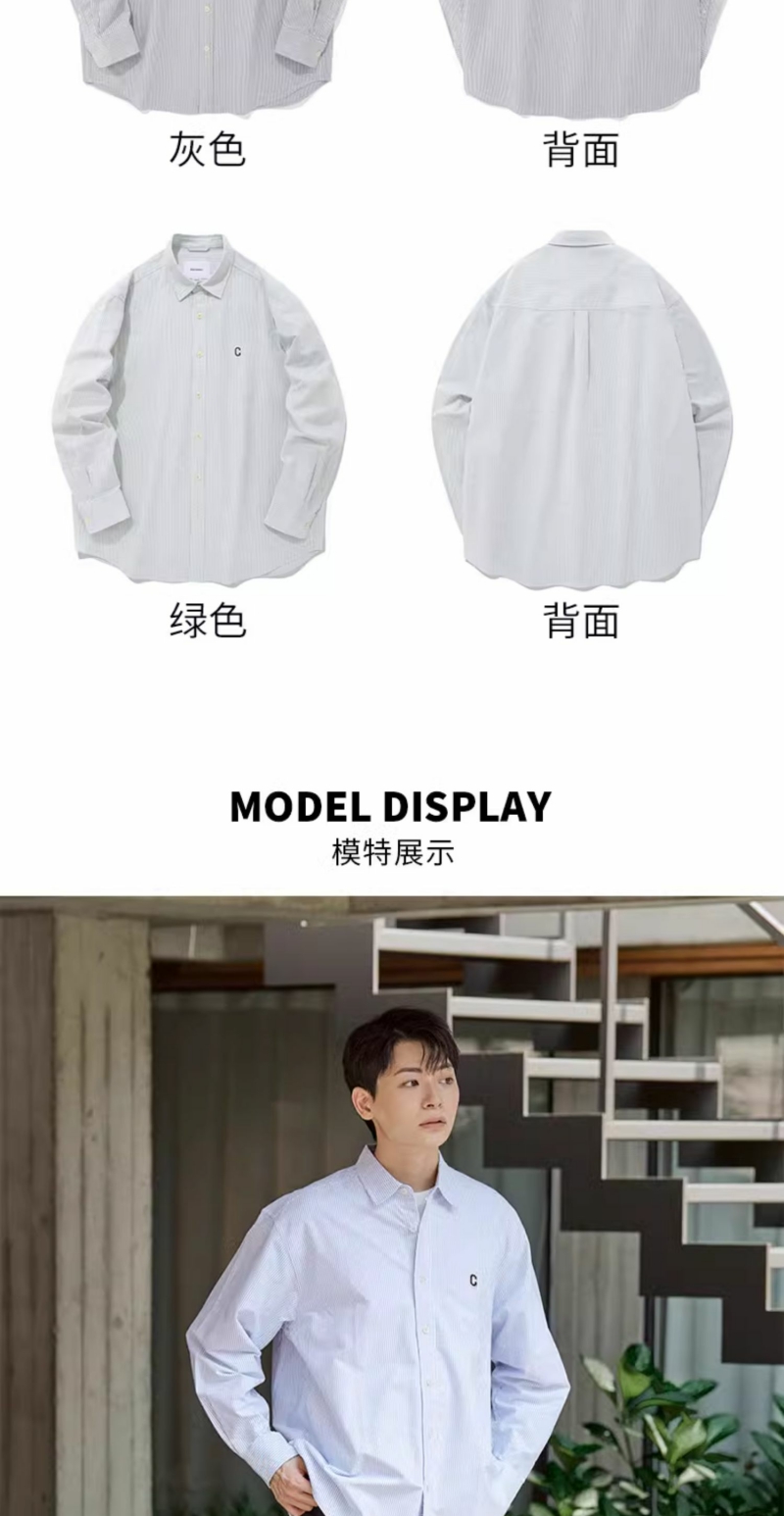 Covernat阔版衬衫春季新品小C标志牛津条纹衬衫潮牌内搭男上衣CO2301SH01
