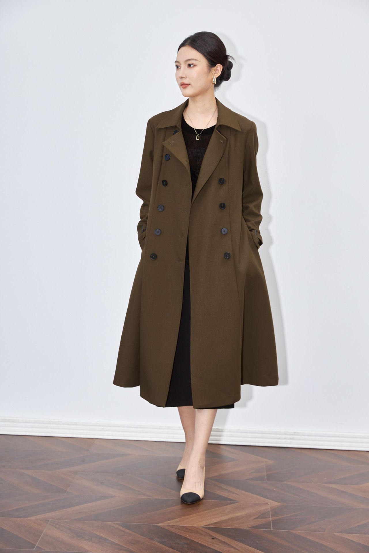 WL 2512811收腰修身中长款大摆A字风衣外套