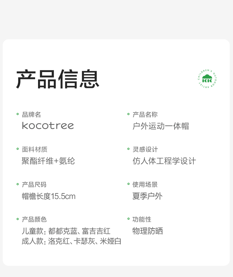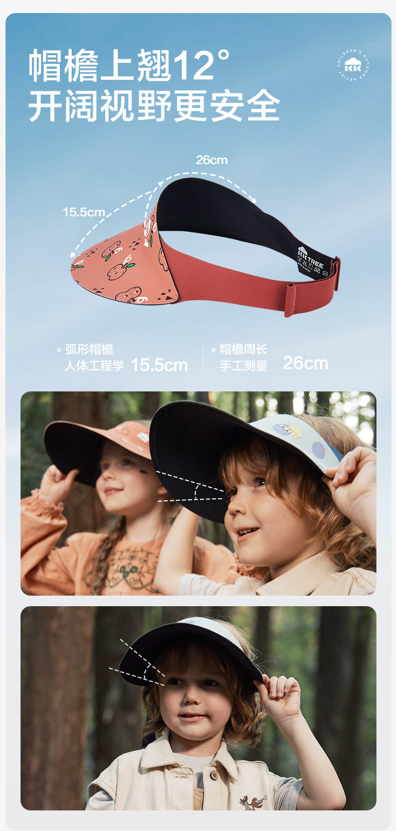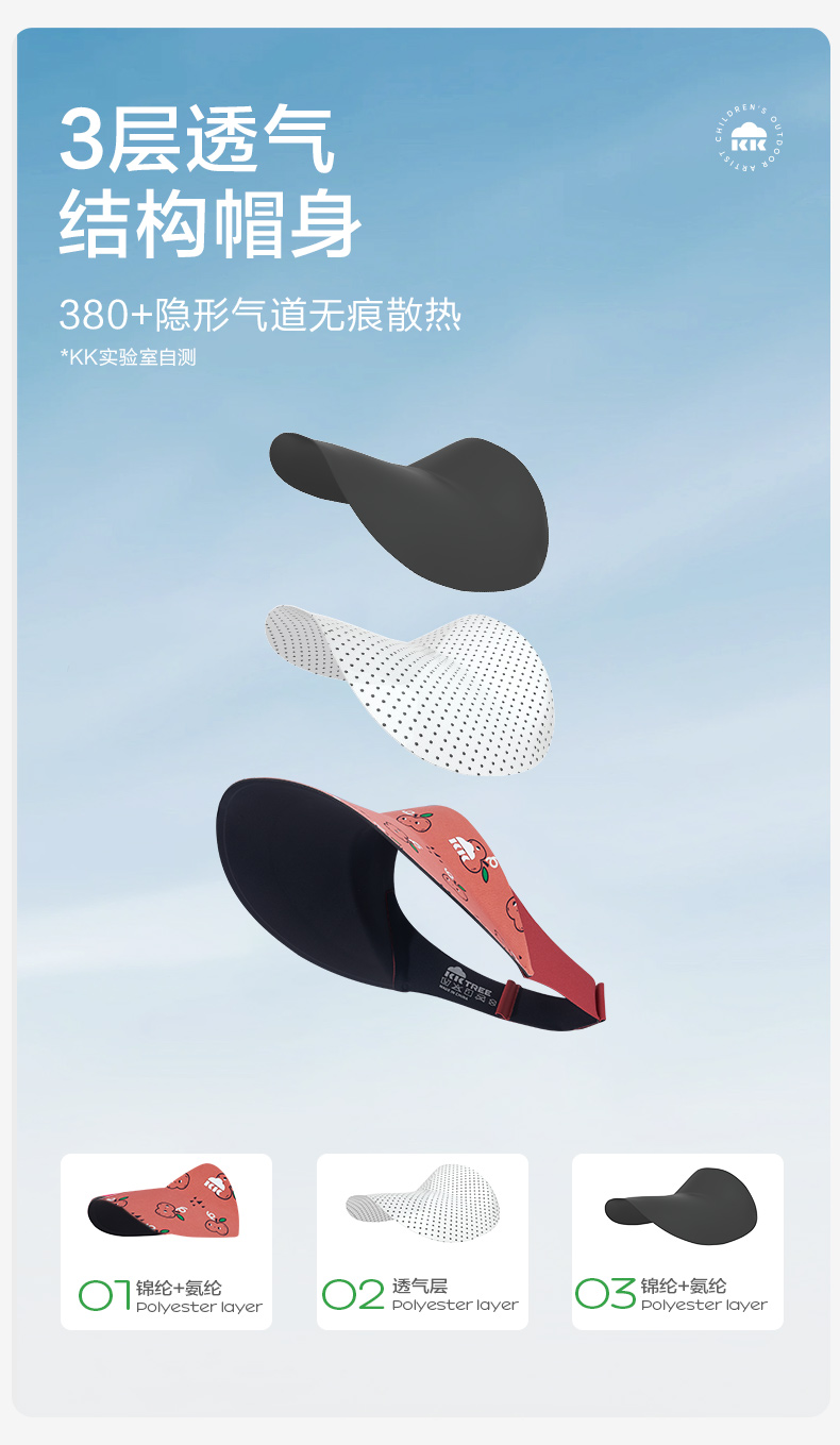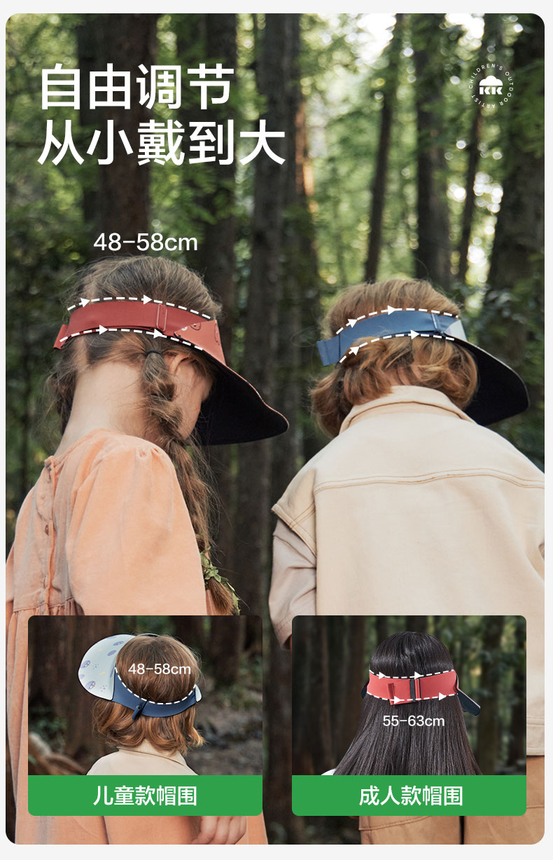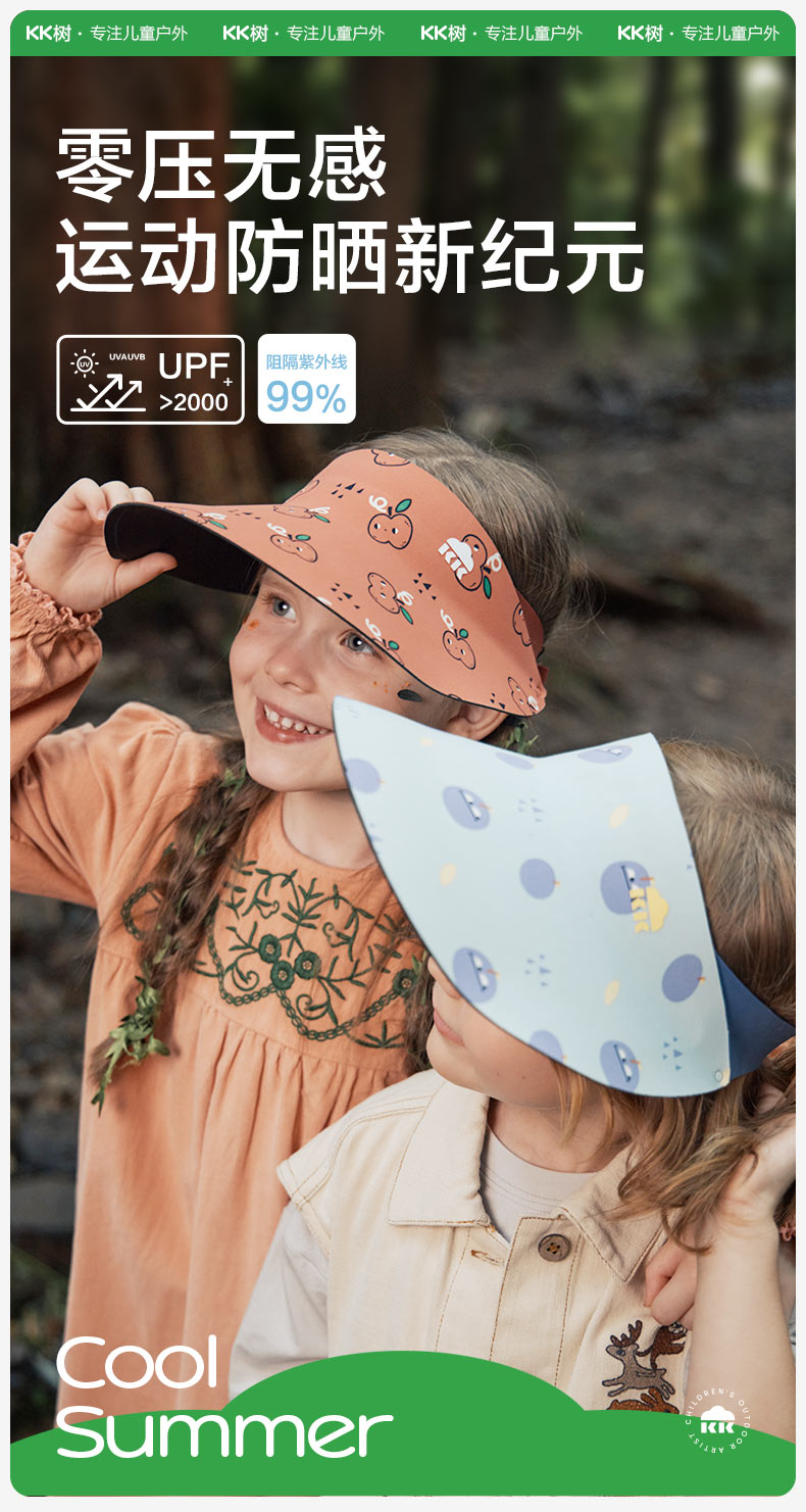KK树亲子防晒帽儿童可折叠遮阳帽男孩宝宝太阳帽子女孩户外空顶帽呼吸运动一体帽户外款