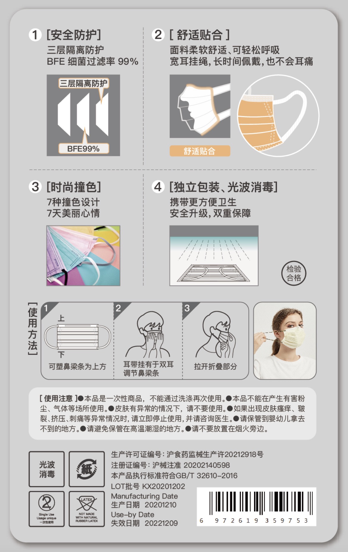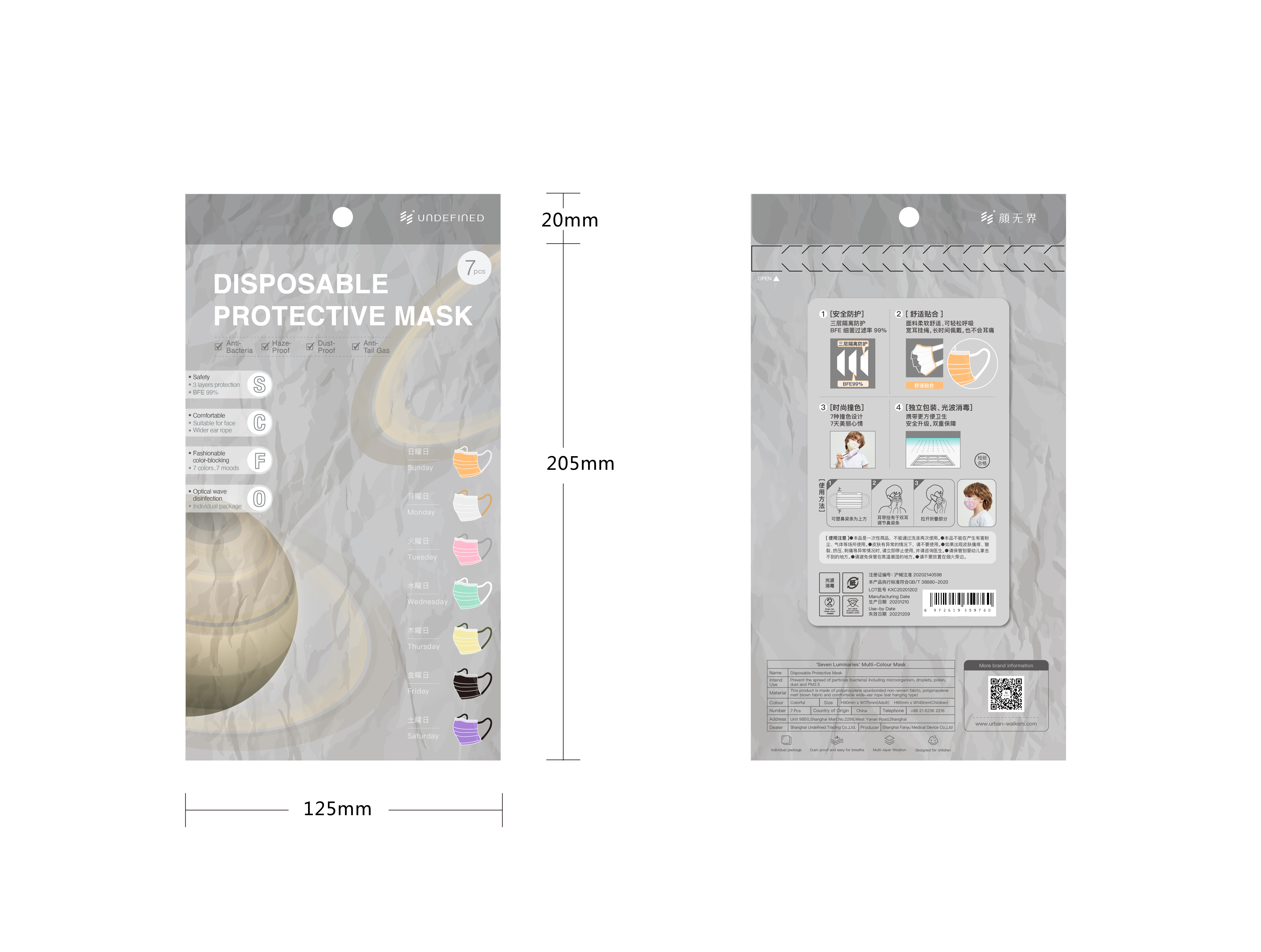颜无界“七曜”彩色口罩, 七色 一周每天不同色彩!