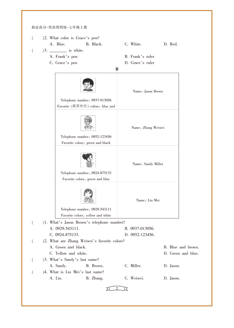 新版验证高分英语周周练七年级上册银版
